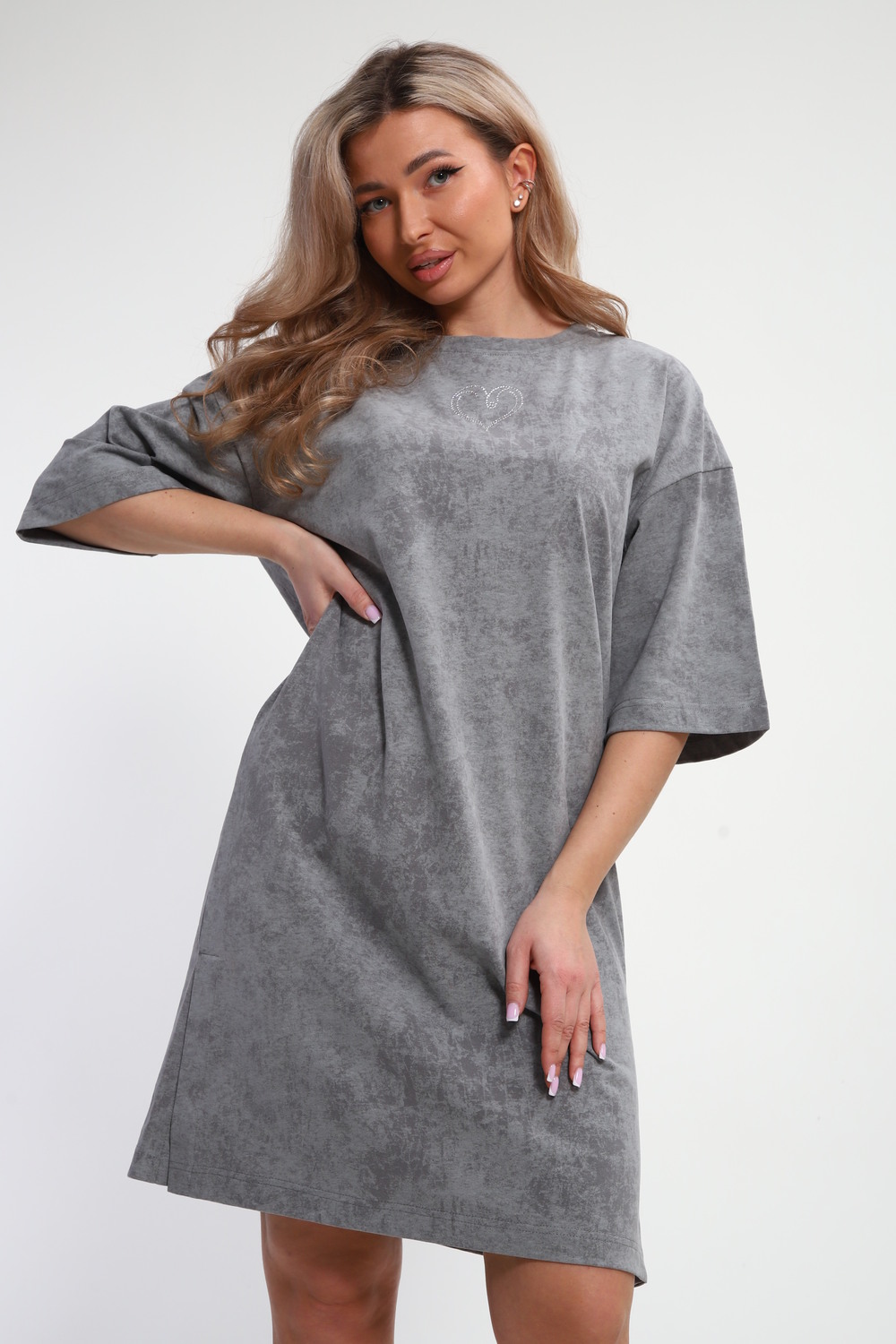 Платье женское туника варенка с принтом Сердце ТП-02