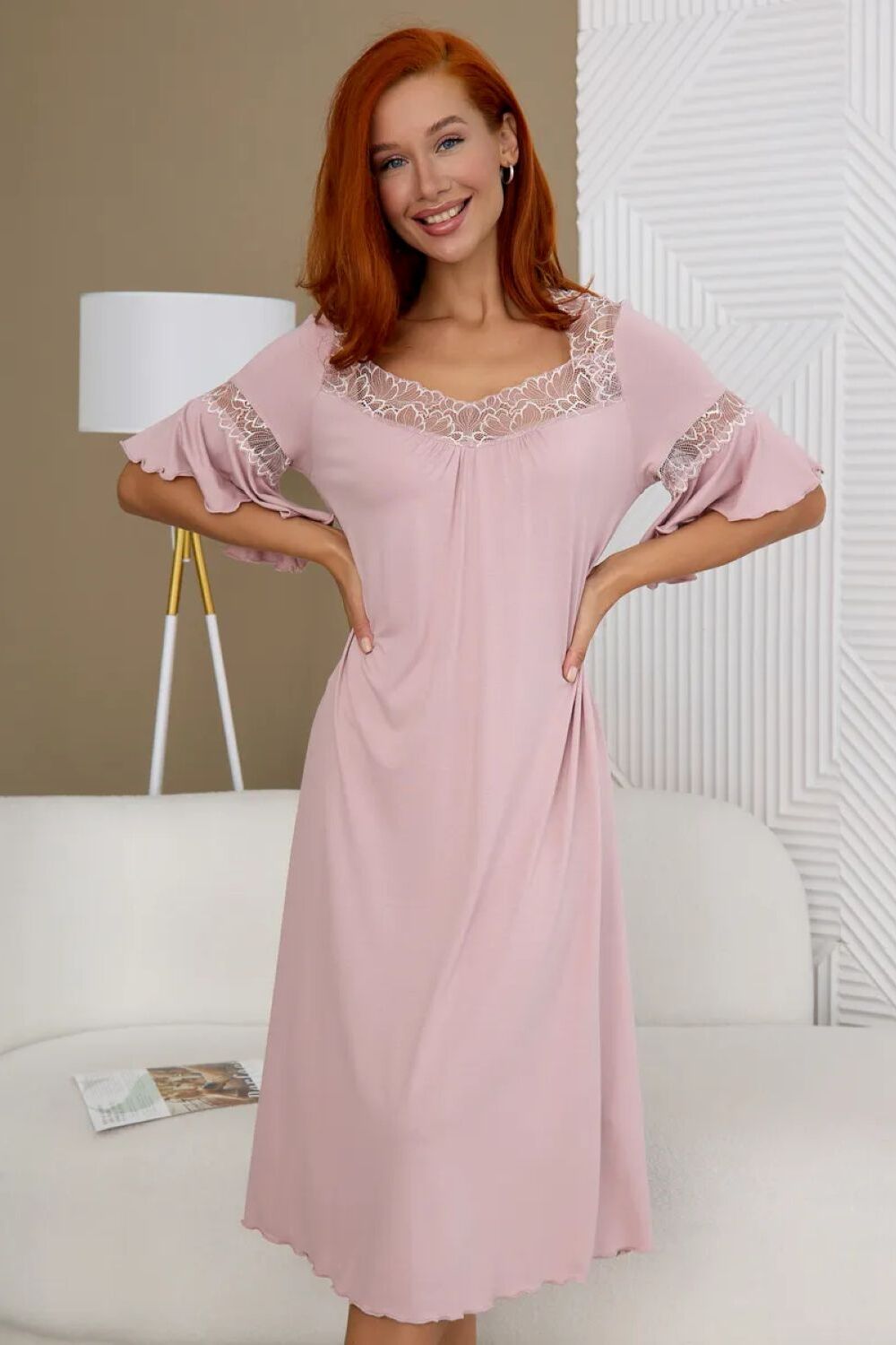 Представляем Вашему вниманию удивительно красивую и комфортную женскую ночную сорочку на большие размеры, созданную из превосходного материала - вискозы отличного качества. Вискозное волокно, содержащие эластан, не подвержено усадке после стирки и при правильном уходе долго сохраняет форму. Белье изготовлено из вискозной ткани, она, как и хлопок гипоаллергенна, хорошо дышит, в то же время - лучше впитывает влагу и струится как шелк. Модель представлена широким размерным рядом от маленьких до больших. Комбинация имеет свободный крой, который обеспечивает свободу движений и комфортный сон. Кружево на груди дополняет изысканный вид, создавая изящный и соблазнительный образ. Эта ночнушка идеально подходит для особых случаев, когда женщина желает выглядеть элегантно и привлекательно, но также обеспечивает полный комфорт во время сна. Подойдет как для стройных девушек, так и для дам с пышными формами, подчеркнет их привлекательность.