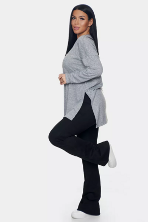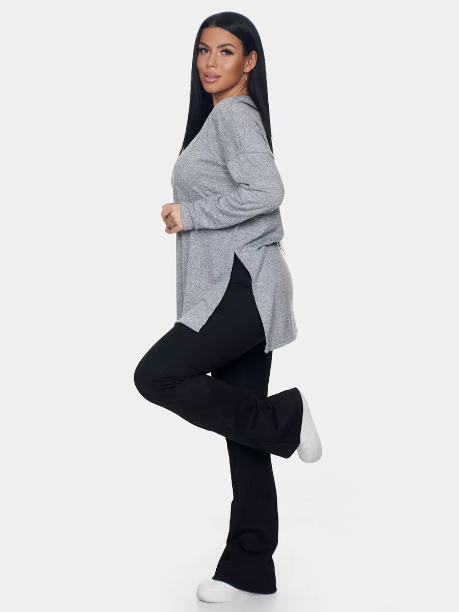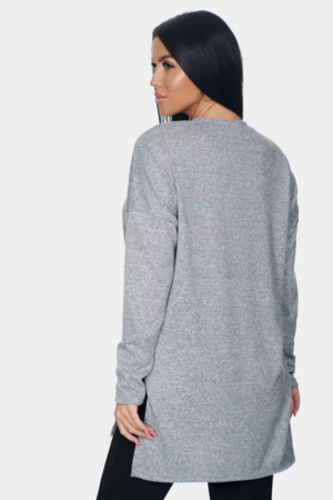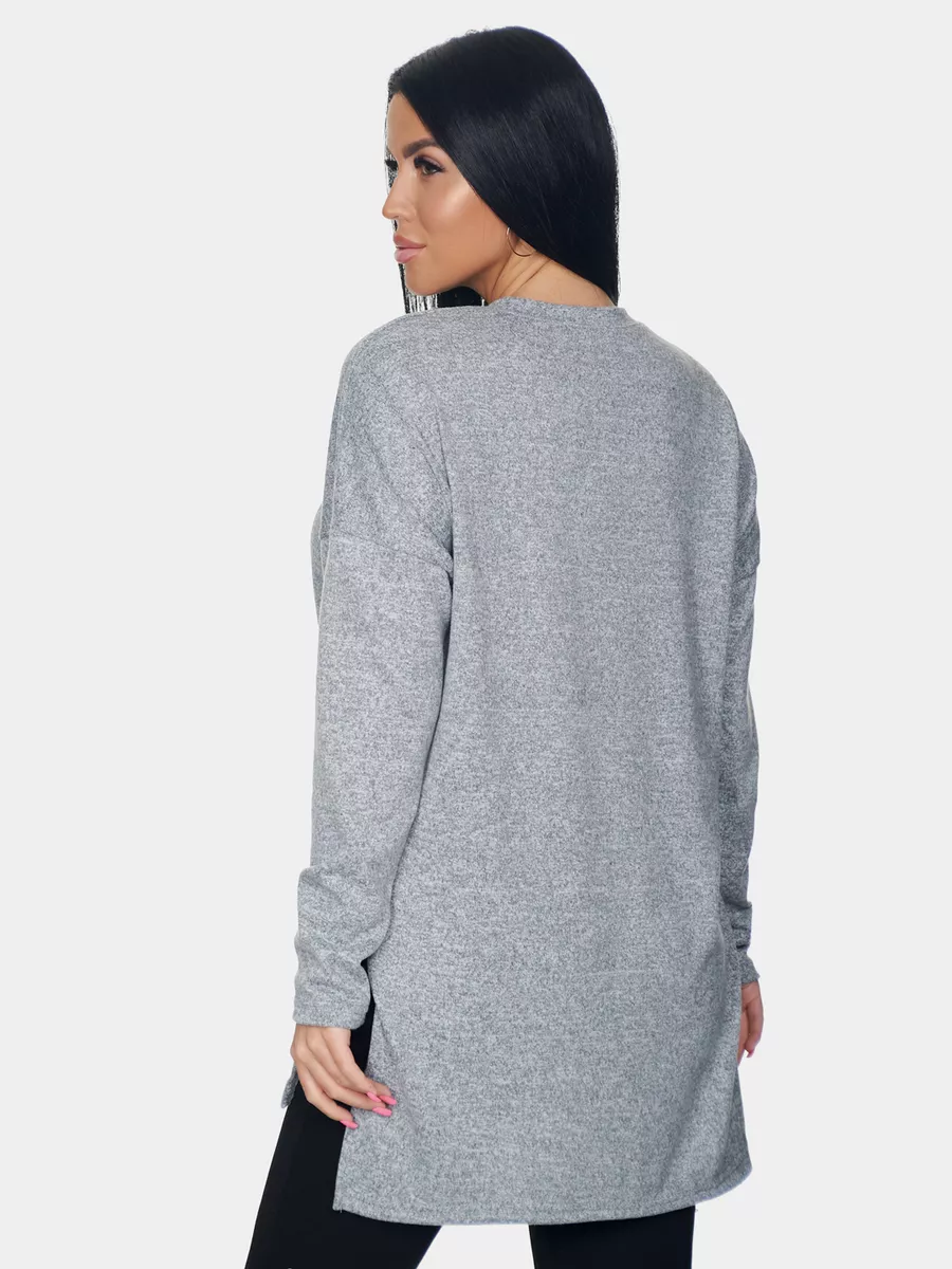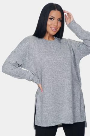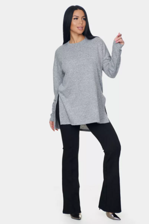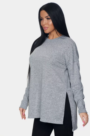 Длинный джемпер из ангоры софт обволакивает мягкостью, нежностью и теплом. Трикотажный пуловер меланжевый с длинными рукавами и с округлым вырезом горловины. Свободный крой и разрезы по бокам идеальны для любого типа фигуры. Трикотажный джемпер отлично подойдет для беременных и для женщин plus size.
