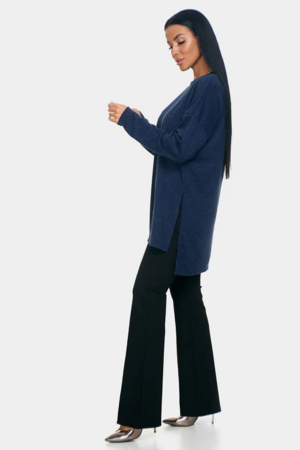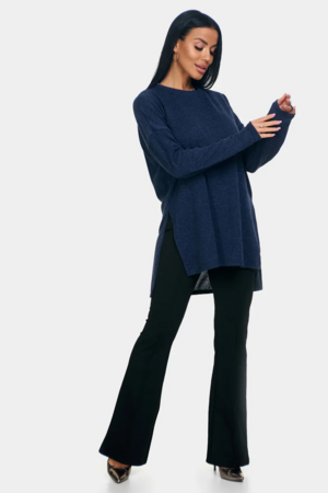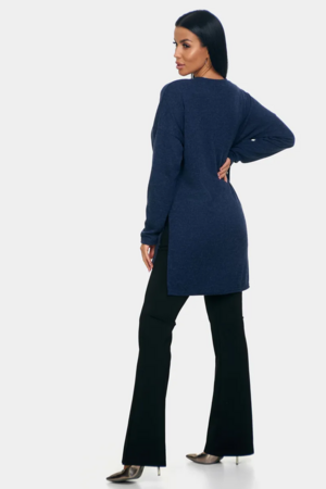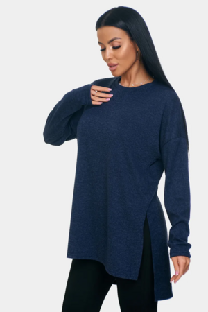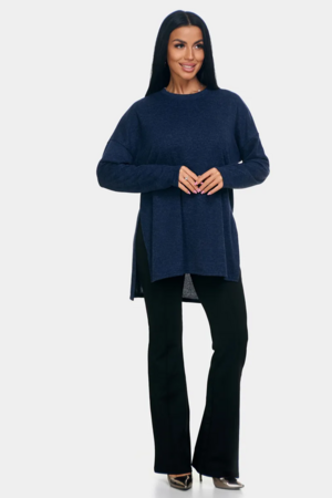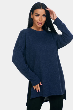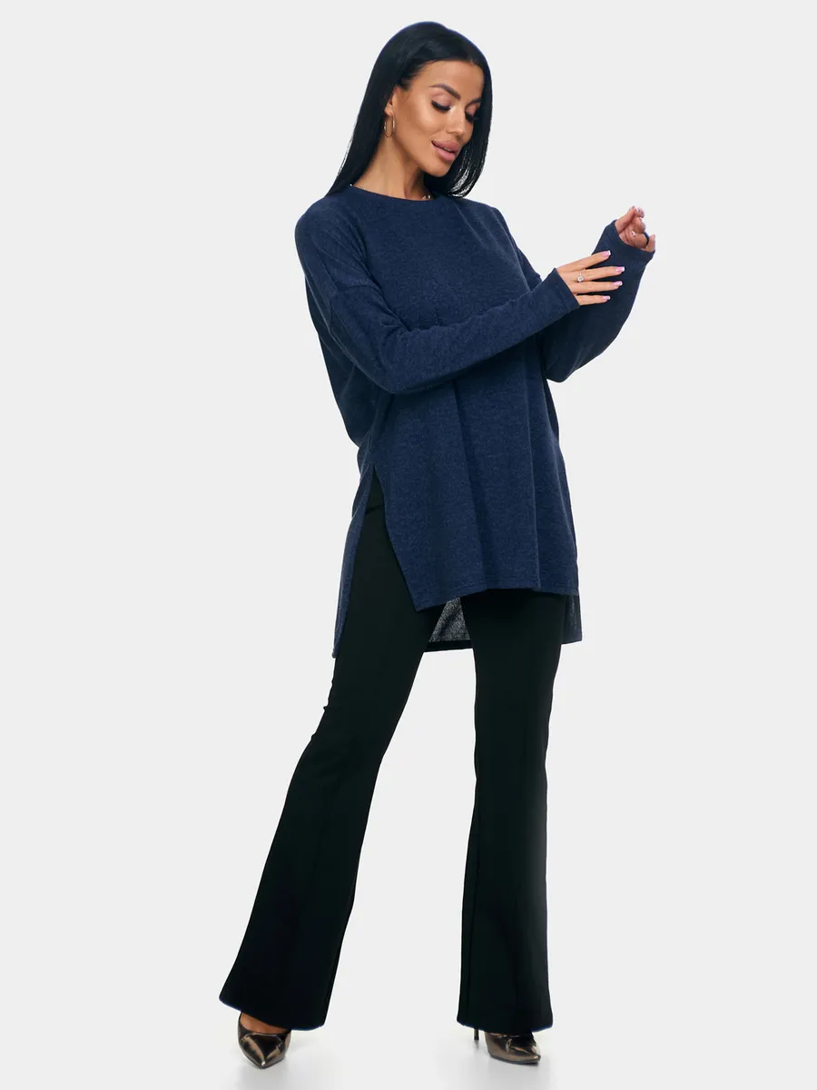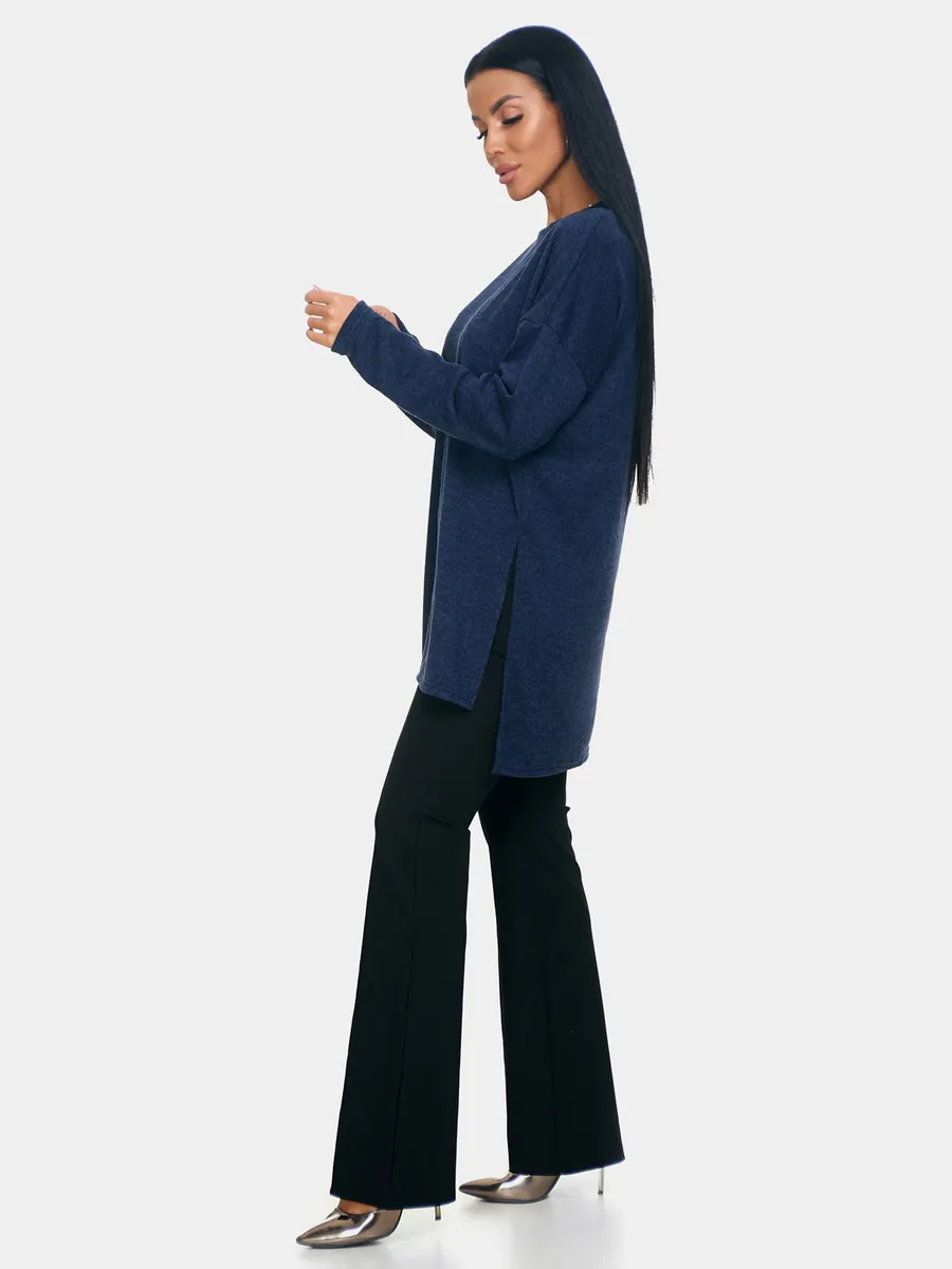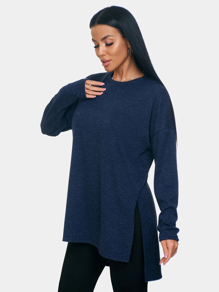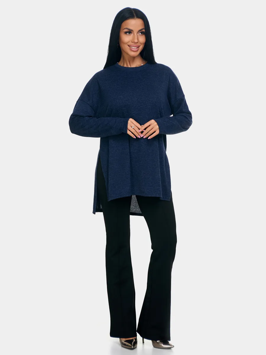 Длинный джемпер из ангоры софт обволакивает мягкостью, нежностью и теплом. Трикотажный пуловер меланжевый с длинными рукавами и с округлым вырезом горловины. Свободный крой и разрезы по бокам идеальны для любого типа фигуры. Трикотажный джемпер отлично подойдет для беременных и для женщин plus size.
