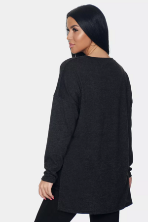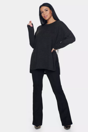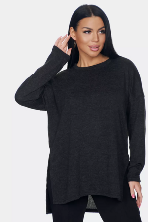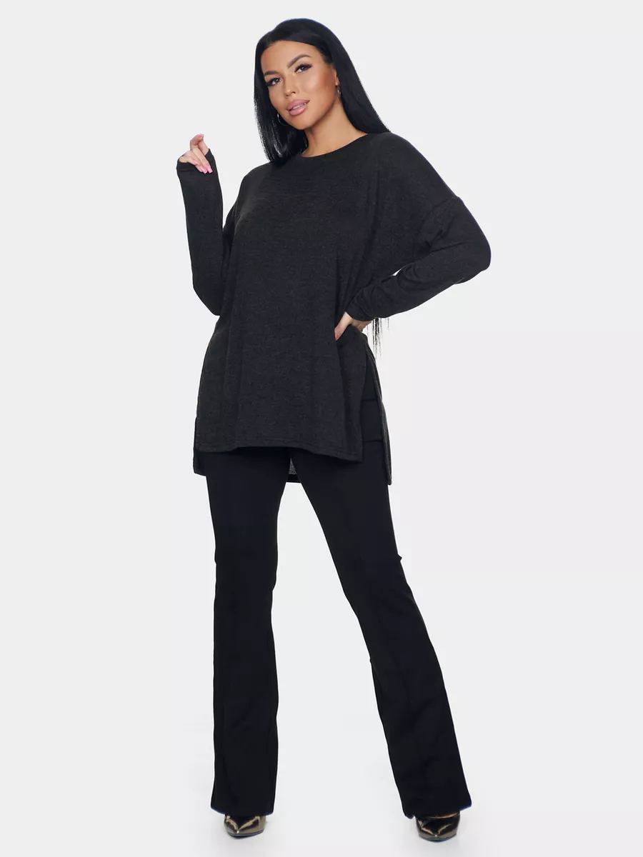 Длинный джемпер из ангоры софт обволакивает мягкостью, нежностью и теплом. Трикотажный пуловер меланжевый с длинными рукавами и с округлым вырезом горловины. Свободный крой и разрезы по бокам идеальны для любого типа фигуры. Трикотажный джемпер отлично подойдет для беременных и для женщин plus size.