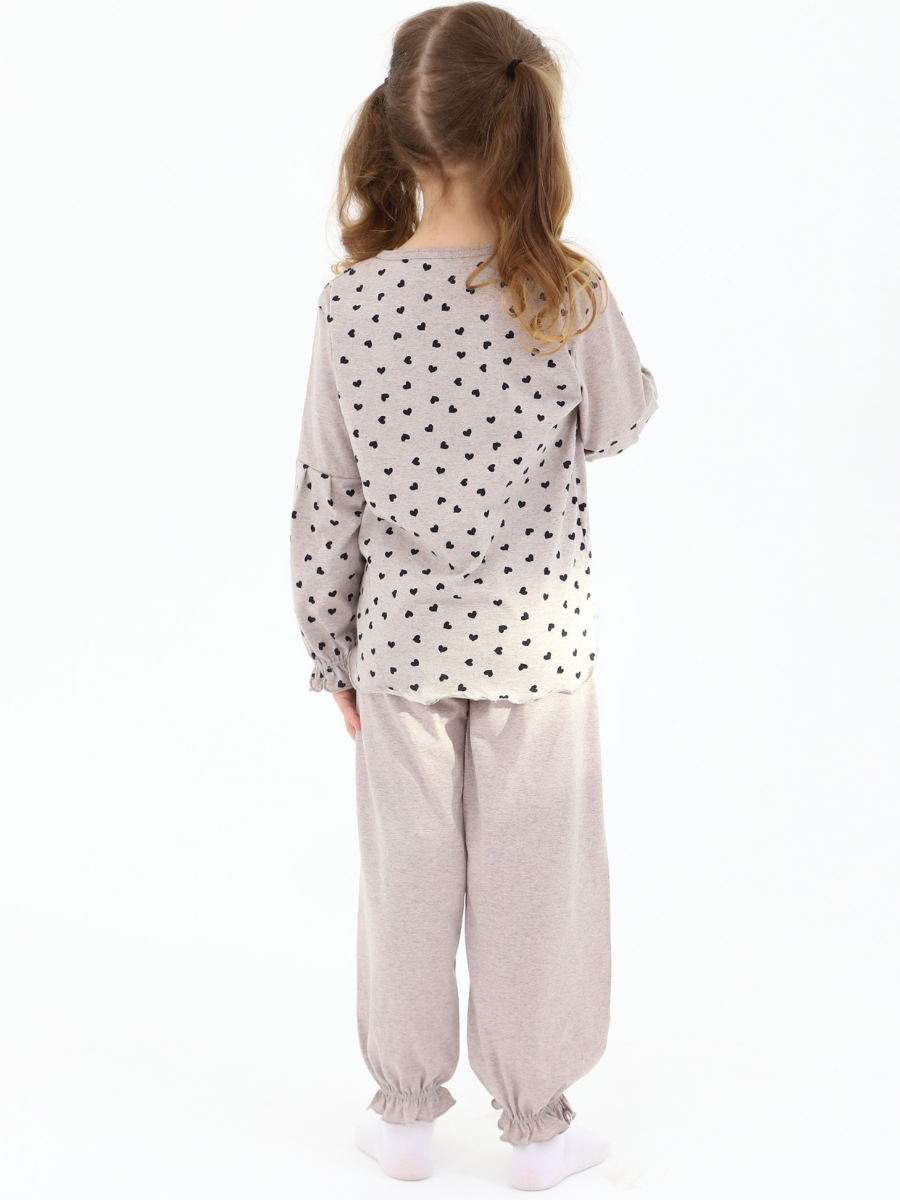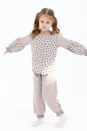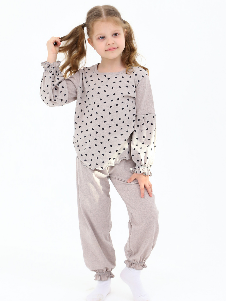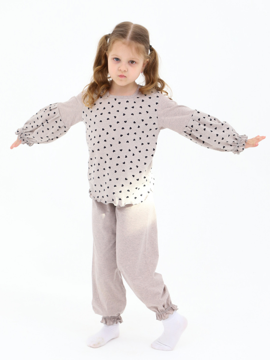 Кофта с рюшами придает образу нежности и игривости, а удобная резинка на штанах обеспечивает надежную посадку без дискомфорта. Такой пижамный костюм не только практичен, но и стильный, что позволяет вашей маленькой моднице быть в тренде даже во время сна.