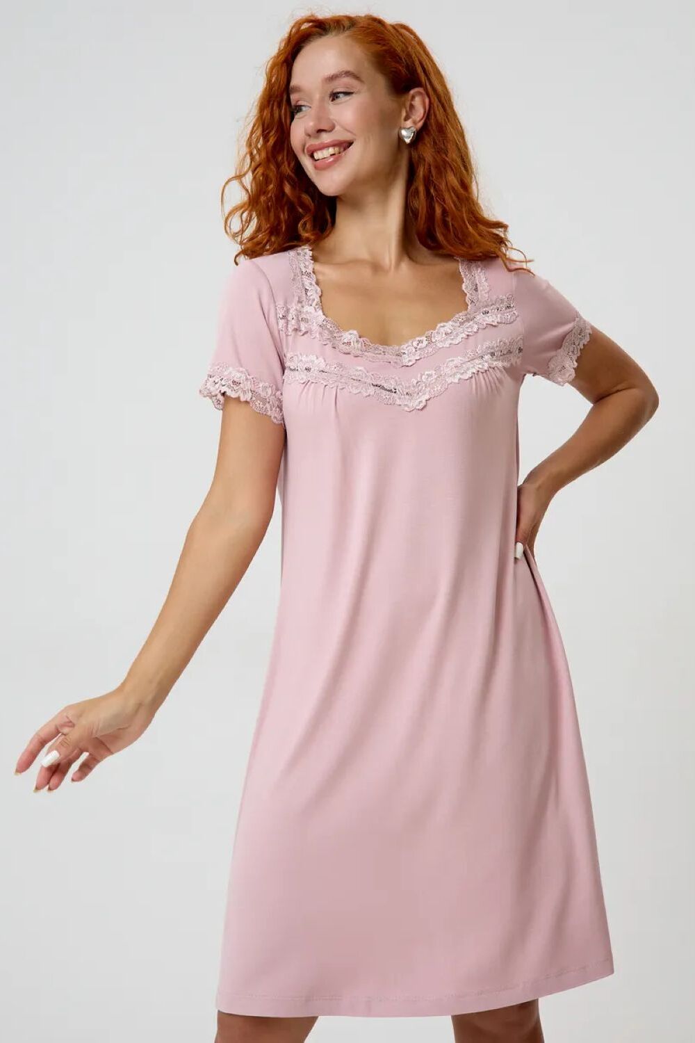 Ночная сорочка больших размеров полуприлегающего силуэта, длинною до колена, выполнена из нежного трикотажного полотна и декорирована узким эластичным кружевом в цвет изделия. Вырез горловины и сборки в районе груди подчеркивают женственность и нежность. Ночнушка не стеснит ваши движения, приятная к телу. Вискозное волокно, содержащие эластан, не подвержено усадке после стирки и при правильном уходе долго сохраняет форму. Модель подойдет, как стройным девушкам, так и дамам с пышными формами. Натуральный материал гарантирует хорошую воздухопроницаемость, что необходимо для комфортного сна. Натуральная шелковистая ткань, которая позволяет коже дышать, превращает модель в комфортную одежду для дома. Эластичное и эффектное кружево добавляет ночнушке сексуальности и романтичности. Домашняя одежда для женщин должна быть красивой и сексуальной. Приобретая нашу сорочку, вы получаете сразу два решения: эффектное платье для дома и одежду для комфортного сна. Вискоза отлично тянется, а это значит, что сорочка подойдет для беременных и кормящих, ее можно взять с собой в роддом.