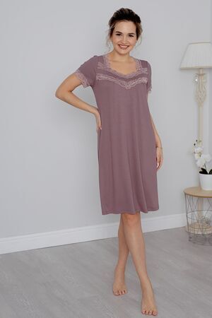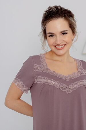 Ночная сорочка больших размеров полуприлегающего силуэта, длинною до колена, выполнена из нежного трикотажного полотна и декорирована узким эластичным кружевом в цвет изделия. Вырез горловины и сборки в районе груди подчеркивают женственность и нежность. Ночнушка не стеснит ваши движения, приятная к телу. Вискозное волокно, содержащие эластан, не подвержено усадке после стирки и при правильном уходе долго сохраняет форму. Модель подойдет, как стройным девушкам, так и дамам с пышными формами. Натуральный материал гарантирует хорошую воздухопроницаемость, что необходимо для комфортного сна. Натуральная шелковистая ткань, которая позволяет коже дышать, превращает модель в комфортную одежду для дома. Эластичное и эффектное кружево добавляет ночнушке сексуальности и романтичности. Домашняя одежда для женщин должна быть красивой и сексуальной. Приобретая нашу сорочку, вы получаете сразу два решения: эффектное платье для дома и одежду для комфортного сна. Вискоза отлично тянется, а это значит, что сорочка подойдет для беременных и кормящих, ее можно взять с собой в роддом.