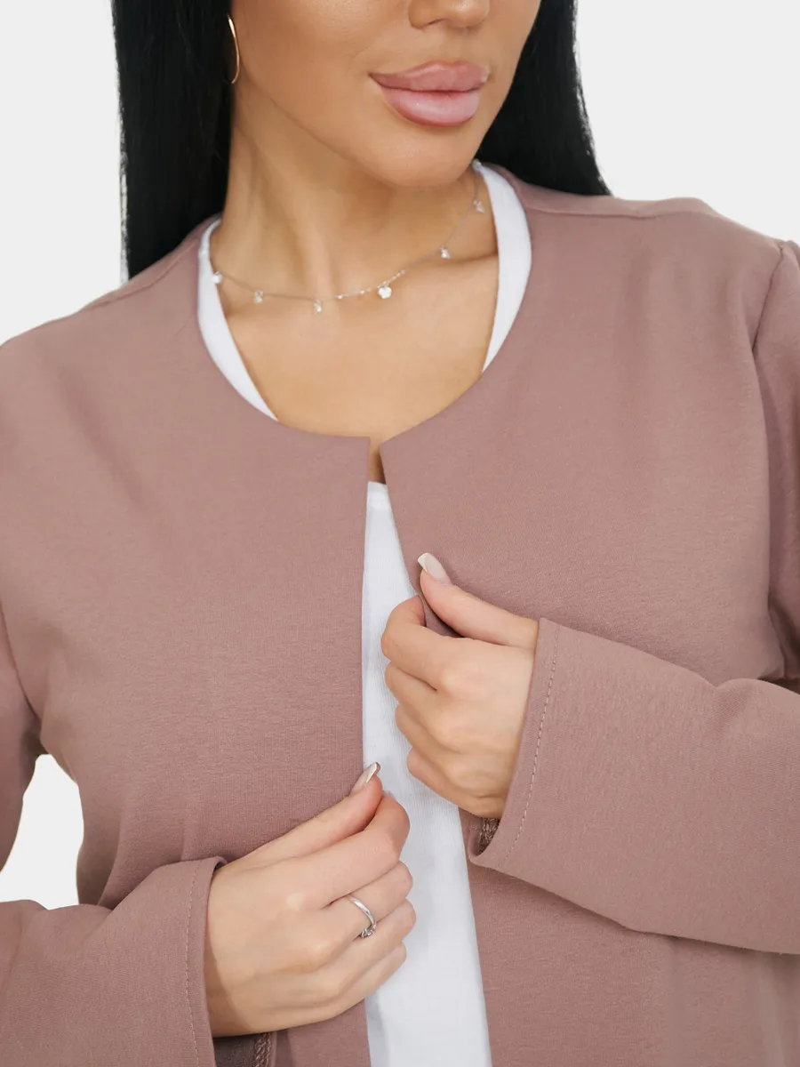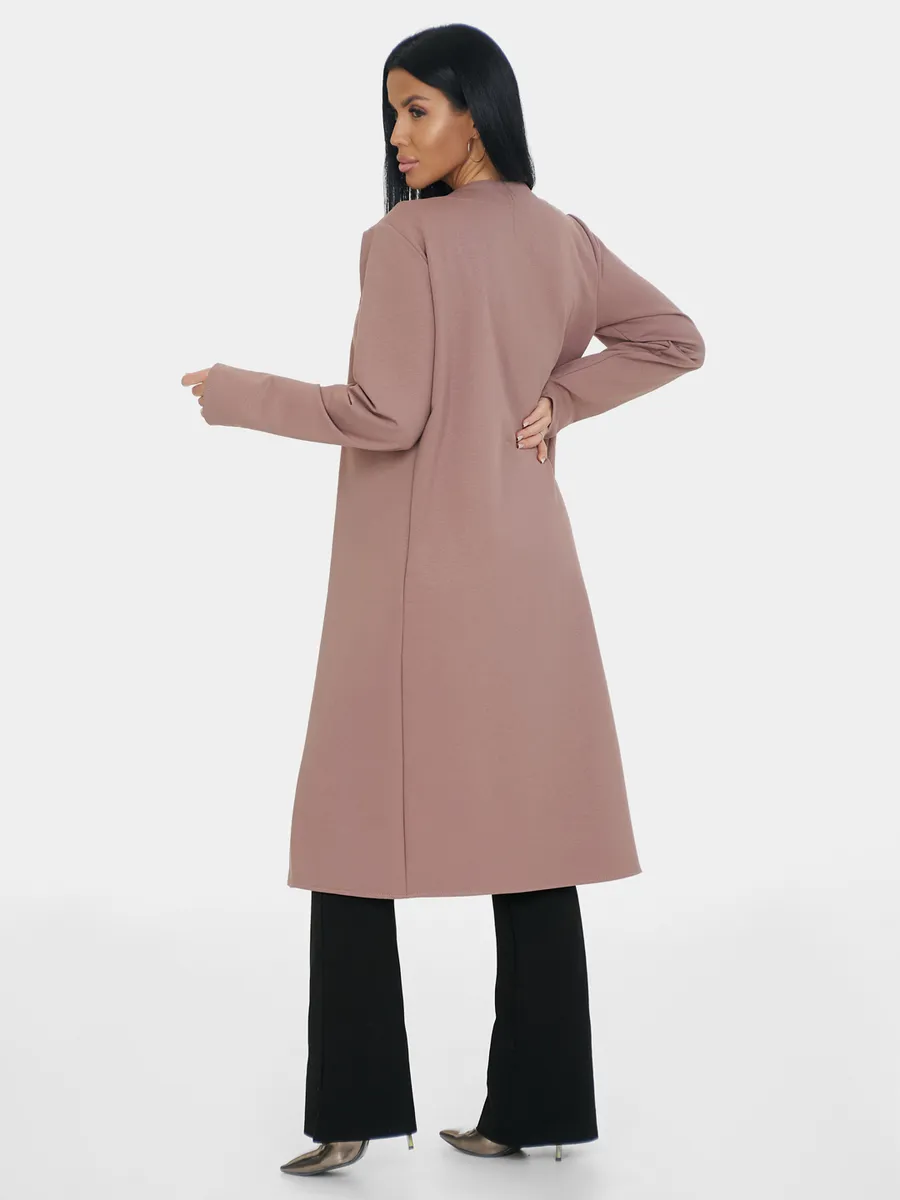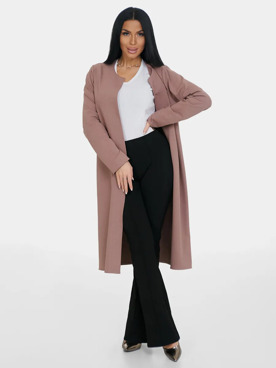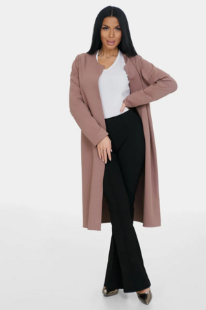 Стильный женственный кардиган, который сочетает в себе элегантность и практичность, придавая образу изысканность и уют. Мягкая и приятная на ощупь ткань обеспечит комфорт на протяжении всего дня, а оптимальная длина чуть ниже колена делает модель универсальной и легко комбинируемой с любыми элементами гардероба. Круглая горловина придает изделию аккуратный, гармоничный вид, а лаконичные линии подчеркивают современный стиль. Кардиган идеально подходит для создания многослойных комплектов, он прекрасно дополняет как повседневный, так и более строгий стиль.