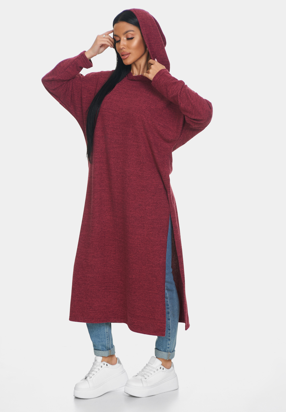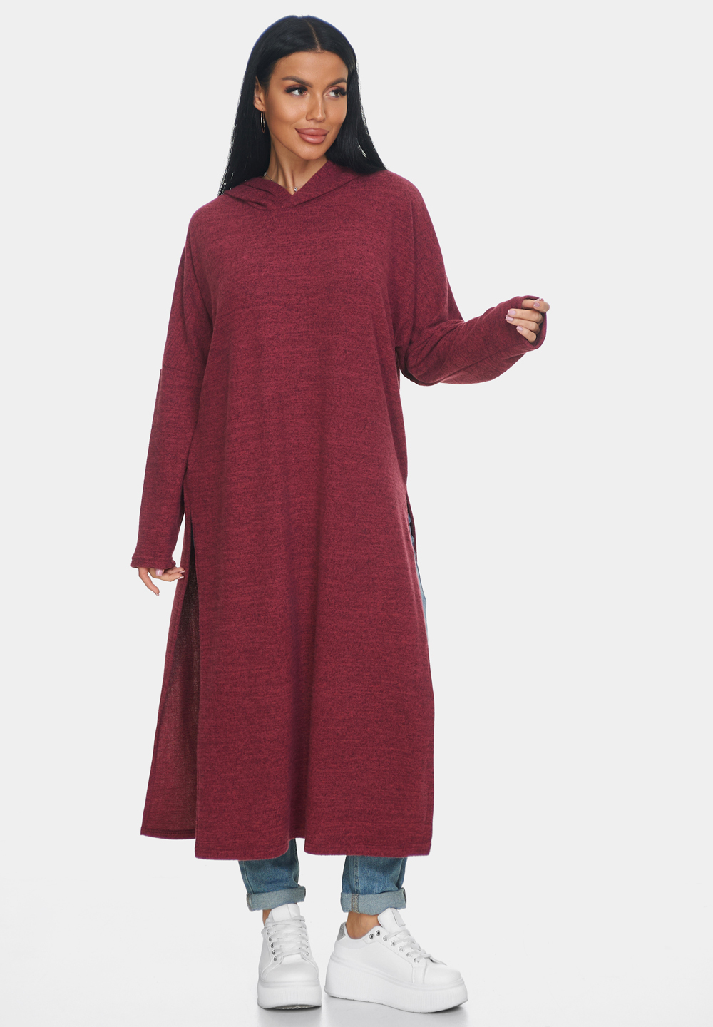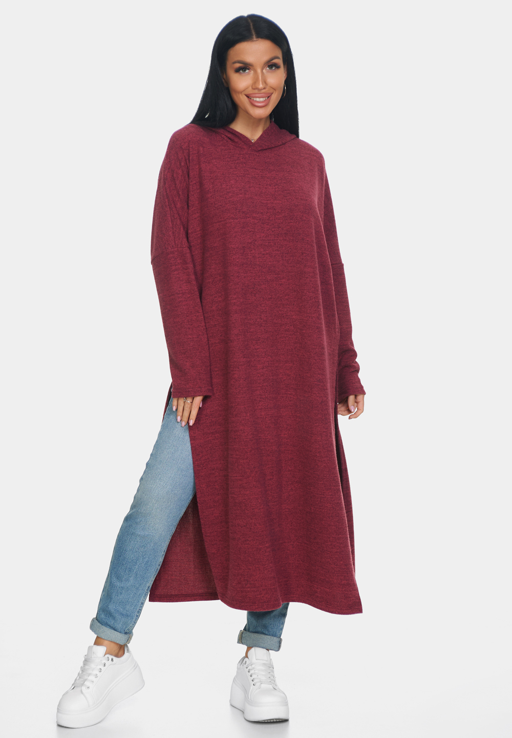 Длинная кофта женская из ангоры — это идеальная вещь для создания уютного и стильного образа. Кофта женская больших размеров отлично садится по фигуре и обеспечивает комфорт в носке благодаря мягкому и тёплому материалу, который приятно прилегает к коже. Свободный крой кофты в стиле оверсайз позволяет чувствовать себя свободно и уверенно, не ограничивая движений. Капюшон добавляет образу оригинальности и защищает от непогоды, делая джемпер женский больших размеров универсальным выбором для разных ситуаций. Разрезы по бокам придают модели динамичность и лёгкость, а также обеспечивают дополнительную вентиляцию в менее прохладный день.