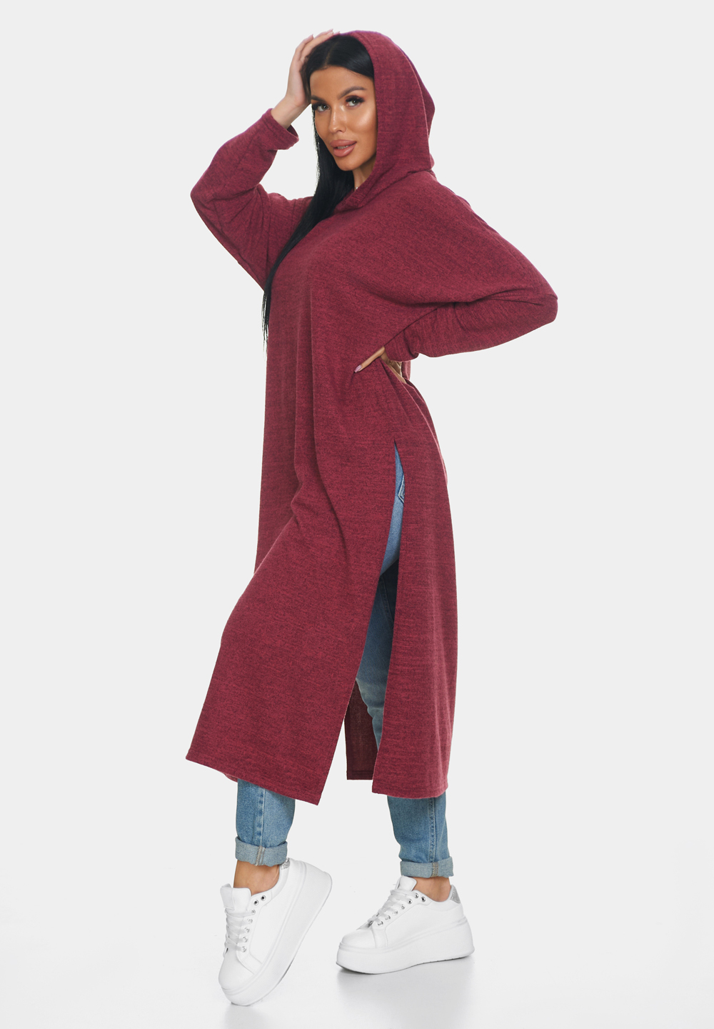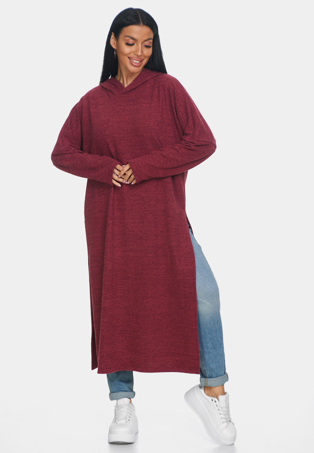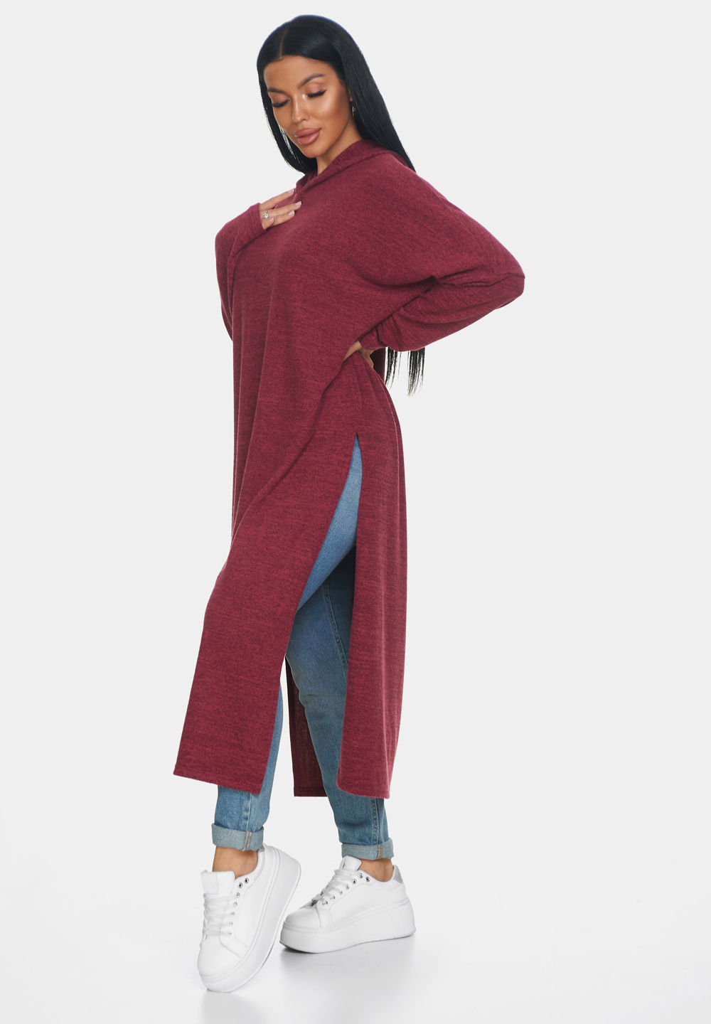 Длинная кофта женская из ангоры — это идеальная вещь для создания уютного и стильного образа. Кофта женская больших размеров отлично садится по фигуре и обеспечивает комфорт в носке благодаря мягкому и тёплому материалу, который приятно прилегает к коже. Свободный крой кофты в стиле оверсайз позволяет чувствовать себя свободно и уверенно, не ограничивая движений. Капюшон добавляет образу оригинальности и защищает от непогоды, делая джемпер женский больших размеров универсальным выбором для разных ситуаций. Разрезы по бокам придают модели динамичность и лёгкость, а также обеспечивают дополнительную вентиляцию в менее прохладный день.