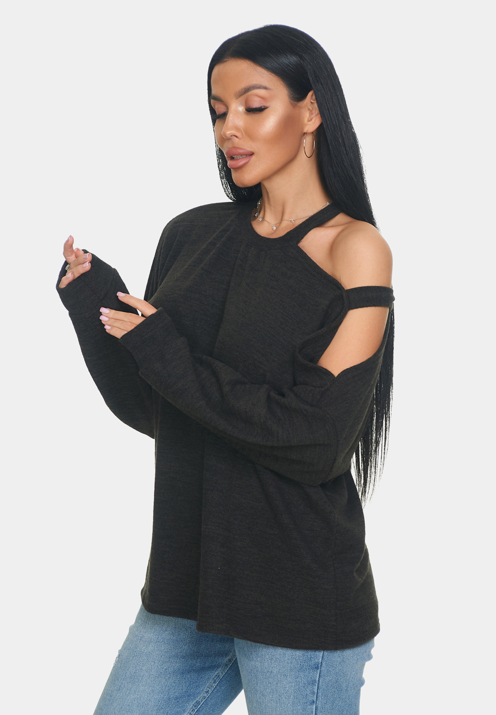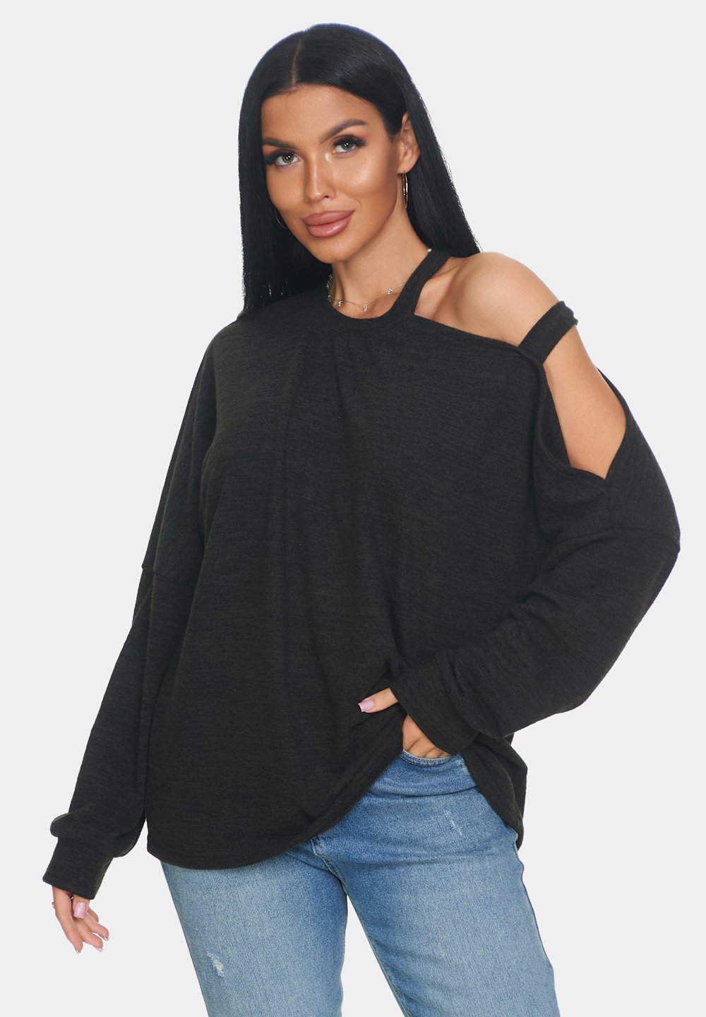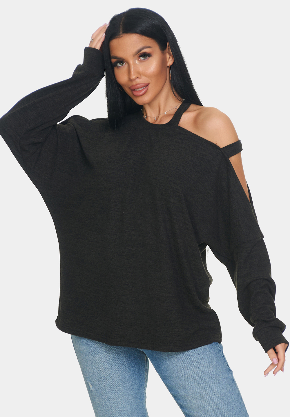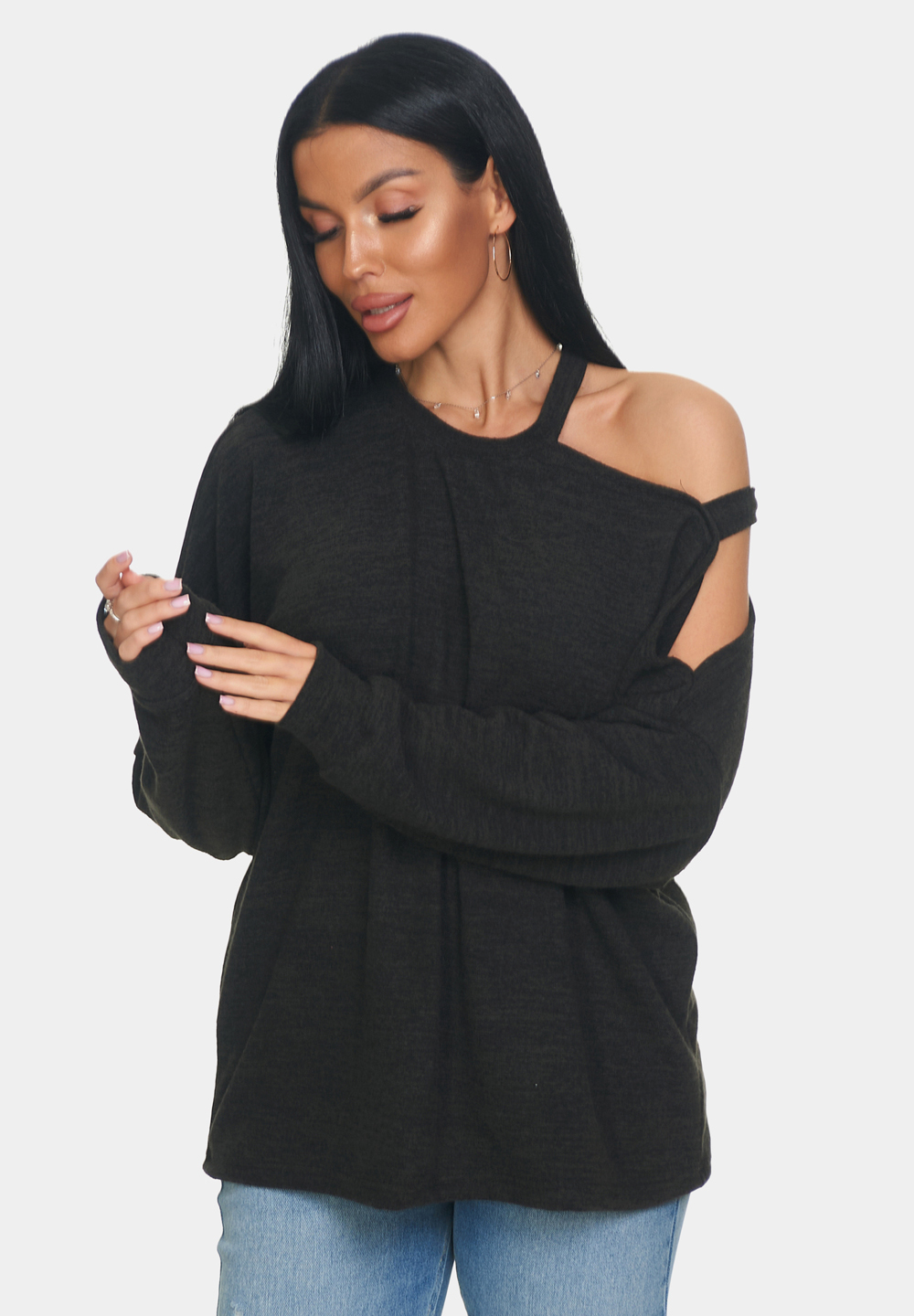 Кофта женская теплая из ангоры — это идеальный выбор для создания уютного и стильного образа. Особенностью этой кофты является круглый вырез и одно плечо, что придаёт образу лёгкость и непринуждённость. Длинные рукава обеспечивают тепло и защиту от прохлады, что делает джемпер женский больших размеров отличным выбором для прохладного времени года. Свободный крой кофты оверсайз обеспечивает свободу движений и комфорт.