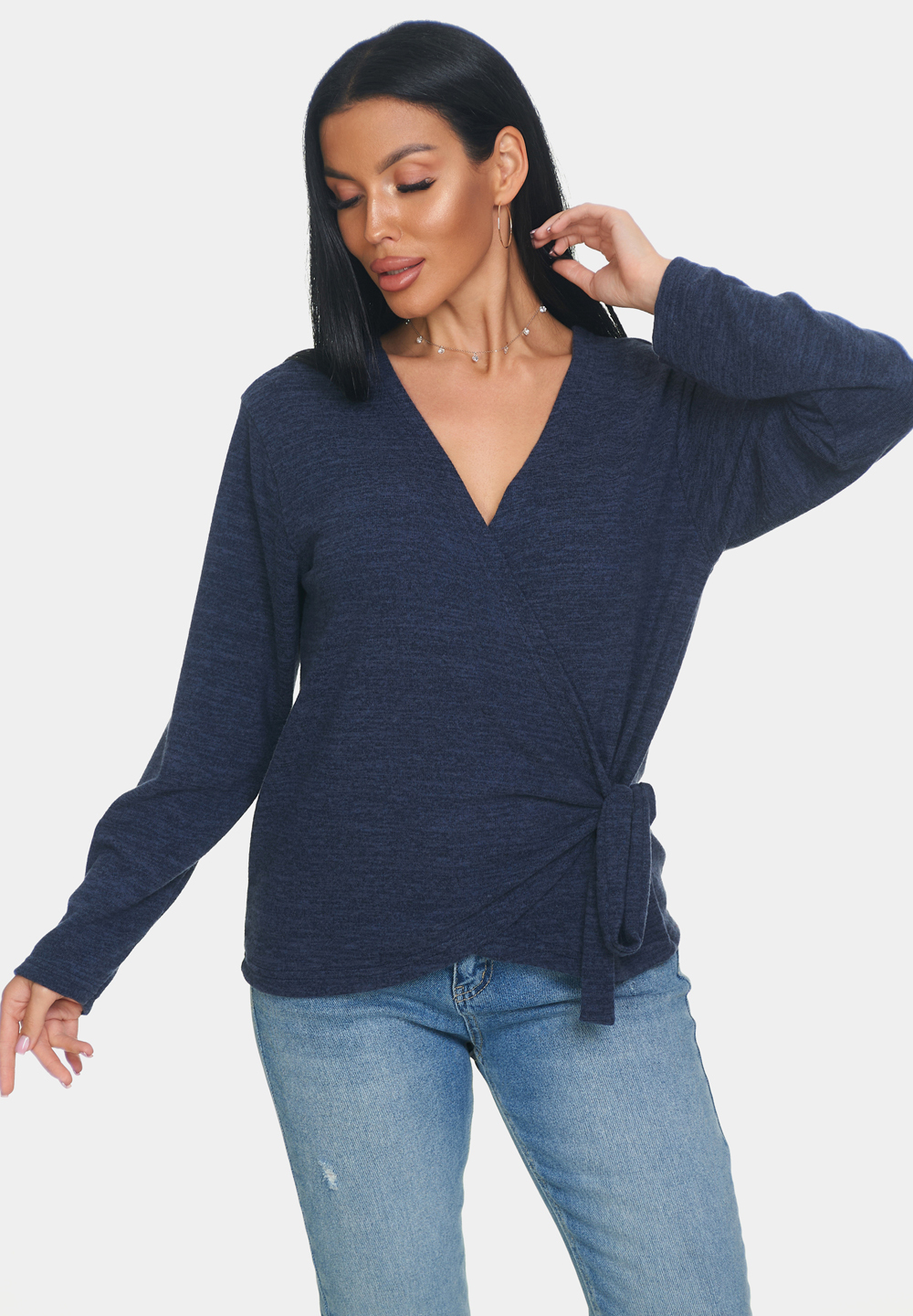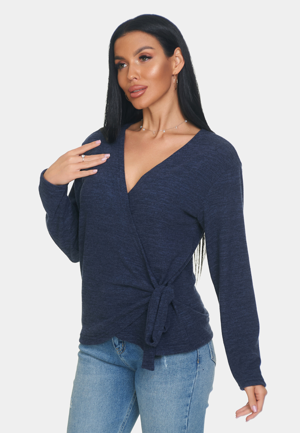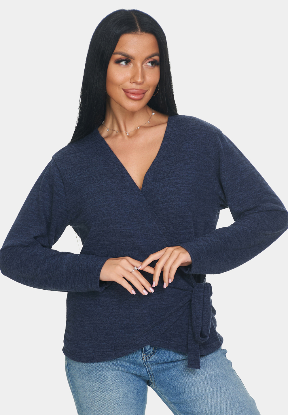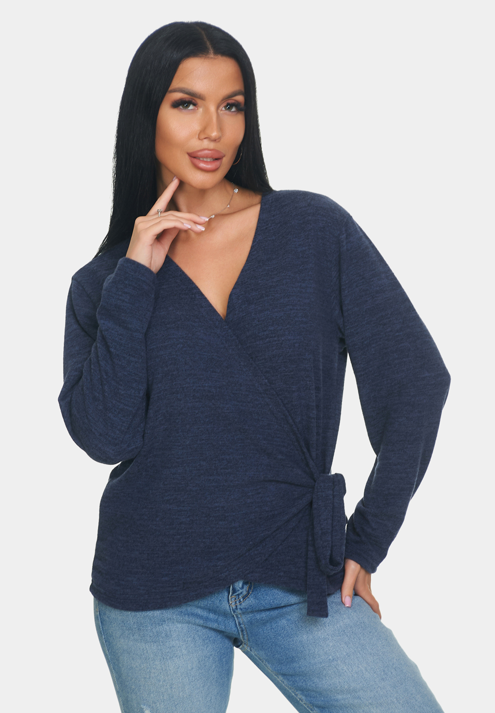 Кофта женская теплая из ангоры — идеальный выбор для создания уютного и стильного образа. Кофточка больших размеров отличается мягким и тёплым материалом, который приятно прилегает к коже и обеспечивает комфорт в носке. Джемпер имеет V-образный вырез, который подчёркивает линию шеи и добавляет изящества образу. Длинные рукава обеспечивают тепло и защиту от прохлады. Завязки на кофте придают модели изюминку и позволяют регулировать силуэт.