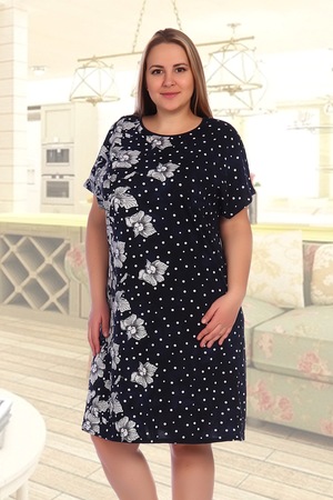 Данная модель платья выполнена из 100% хлопка, который позволяет коже дышать. Платье прямого покроя, цельнокроеный спущенный рукав
