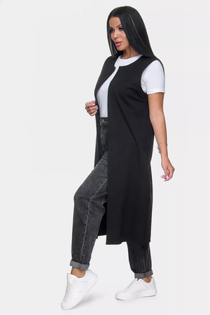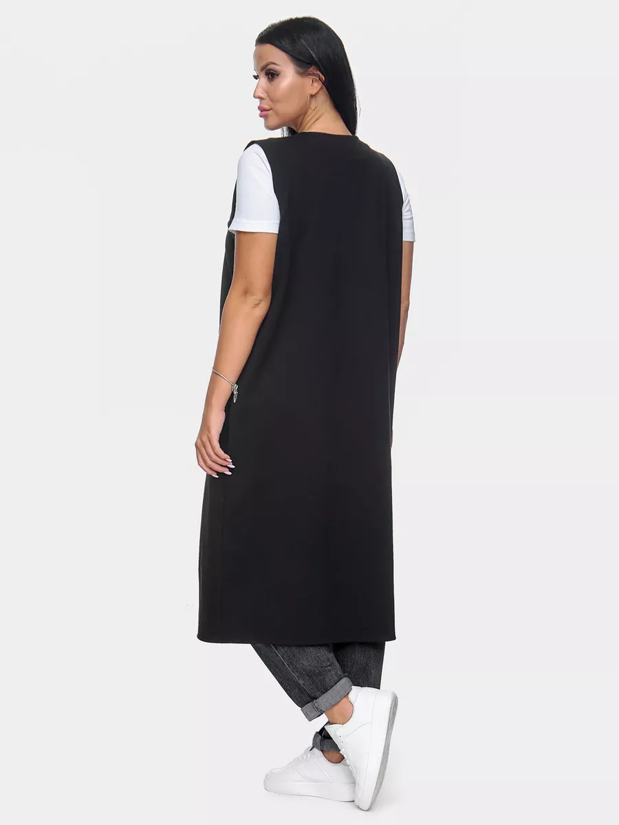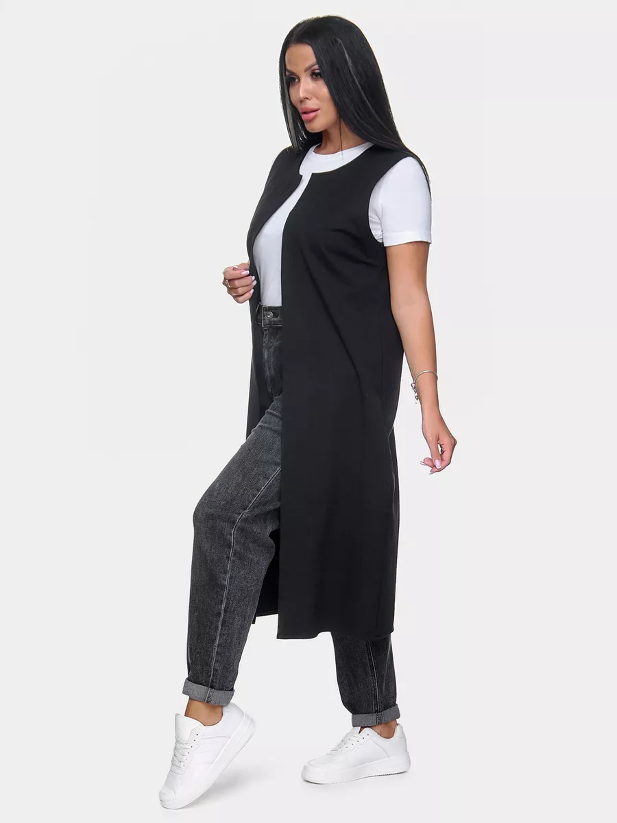 Жилетка женская длинная офисная больших размеров. Качественный удлиненный элемент женской одежды. Строгий жилет с правильной посадки, прямого кроя. Костюмный жилет поможет создать деловой образ.