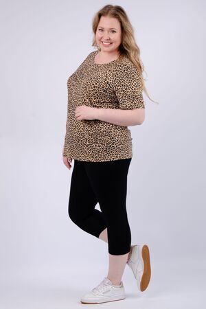 Легкий комплект из мягкой вискозы идеально подойдет для летних дней и активного отдыха. В набор входит стильная футболка и удобные бриджи, которые обеспечивают свободу движений во время тренировок, занятий йогой, танцев или фитнеса. Этот образ создает базовый гардероб для девушек и женщин, небольших и высоких, большой выбор размеров plus size.