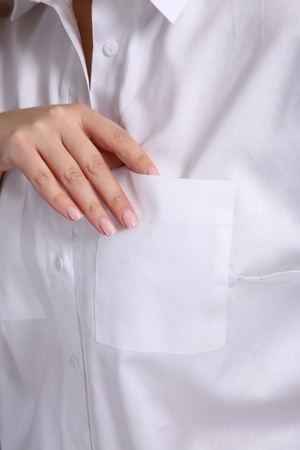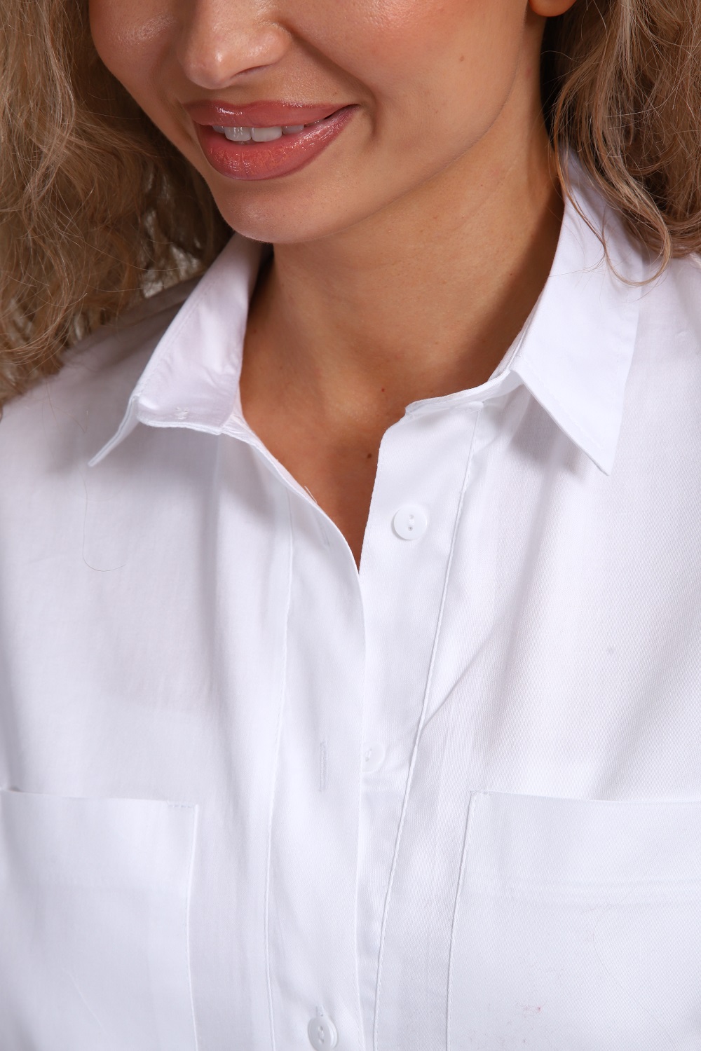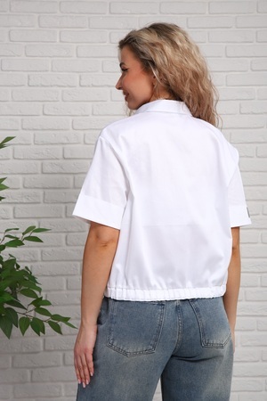 Резинка по низу рубашки создаёт силуэт, посадка по фигуре задумана без натяжения резинки. Планка на пуговицах. Данная рубашка - универсальный выбор и для делового стиля (отлично сочетается с классическими юбками и брюками), и для повседневной одежды (сочетается с джинсами, спортивными штанами).