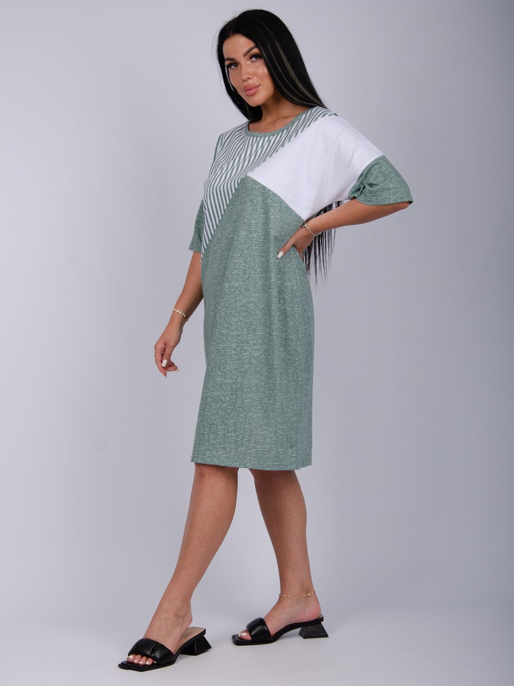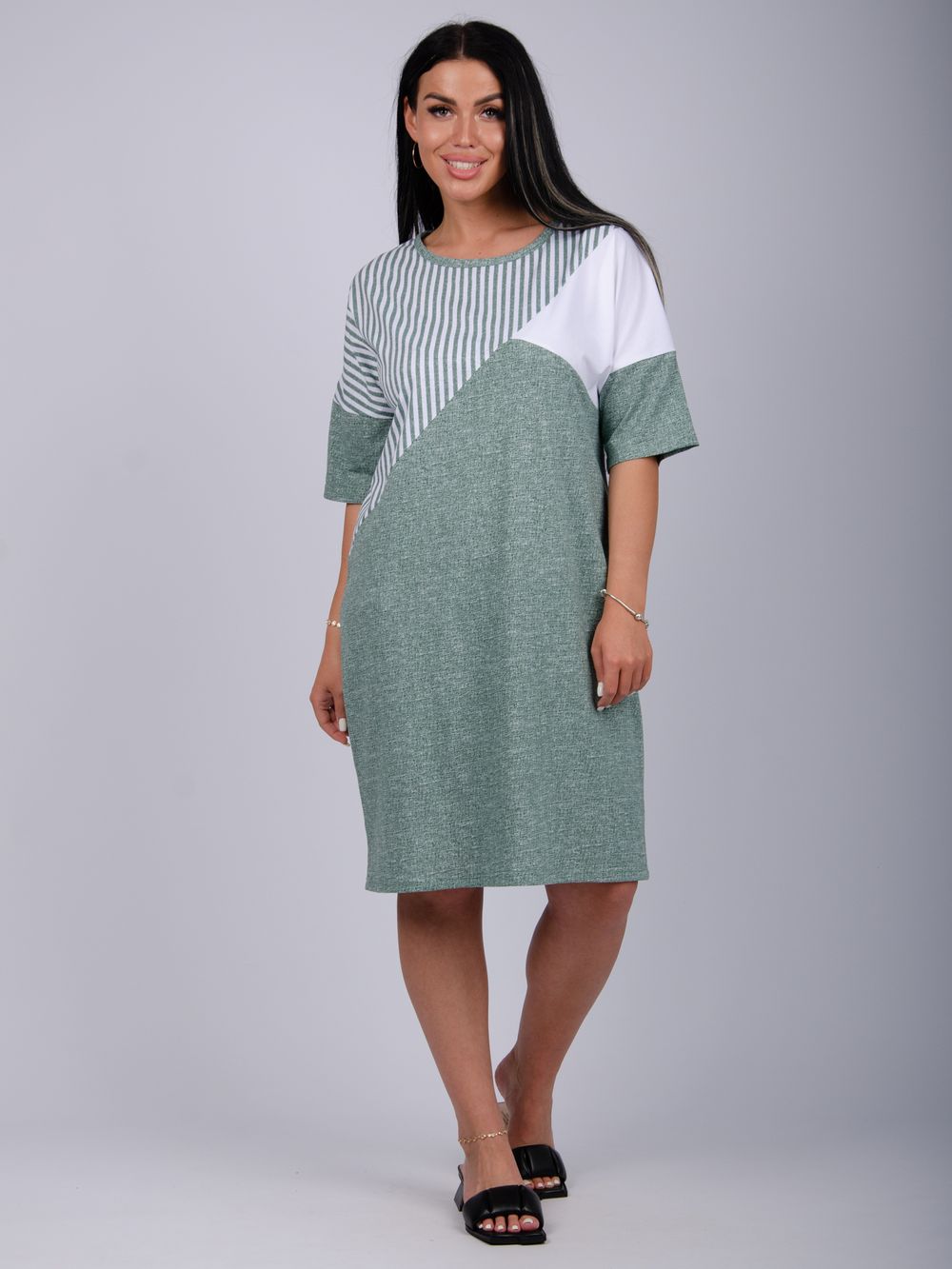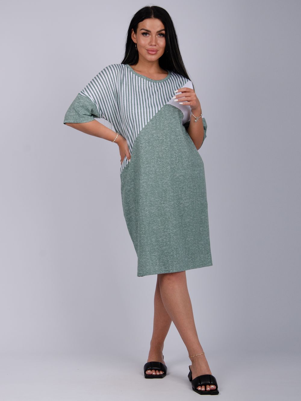 Туника женская прямого силуэта. Горловина выполнена с обтачкой.