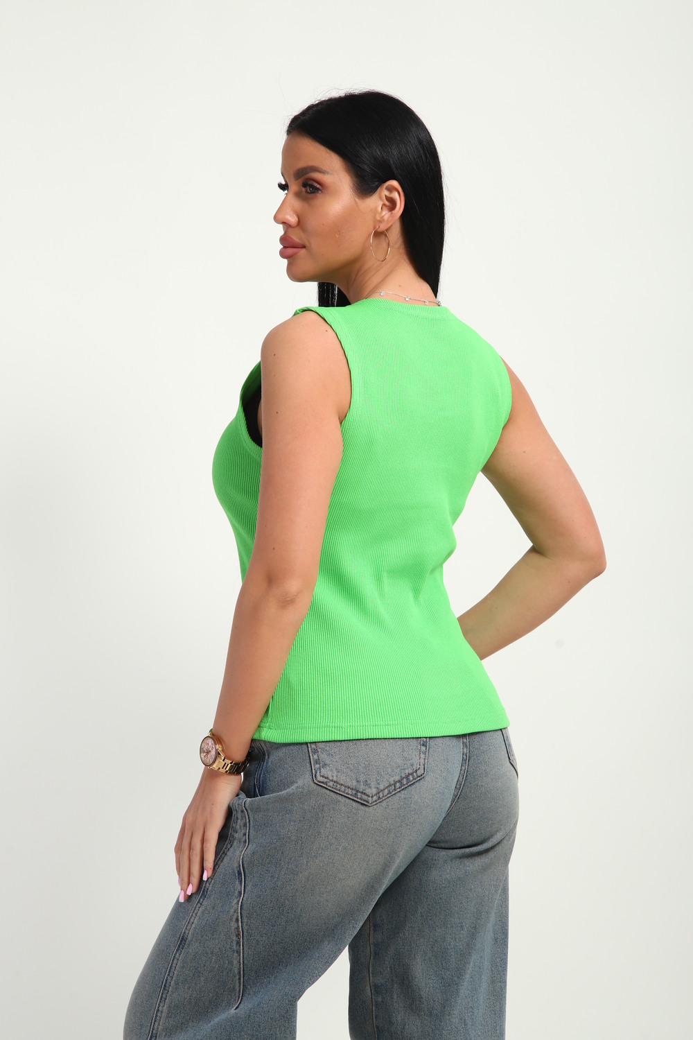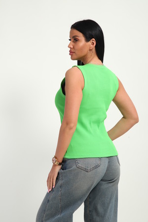 Трендовый топ, сшит из приятной к телу ткани. Материал кашкорсе с фактурой в рубчик, хорошо тянется и очень комфортна в носке. Эстетичная модель с круглым вырезом имеет качественный пошив и отлично держит форму.