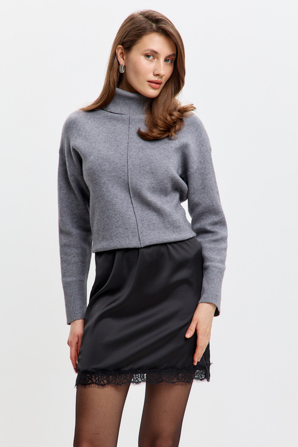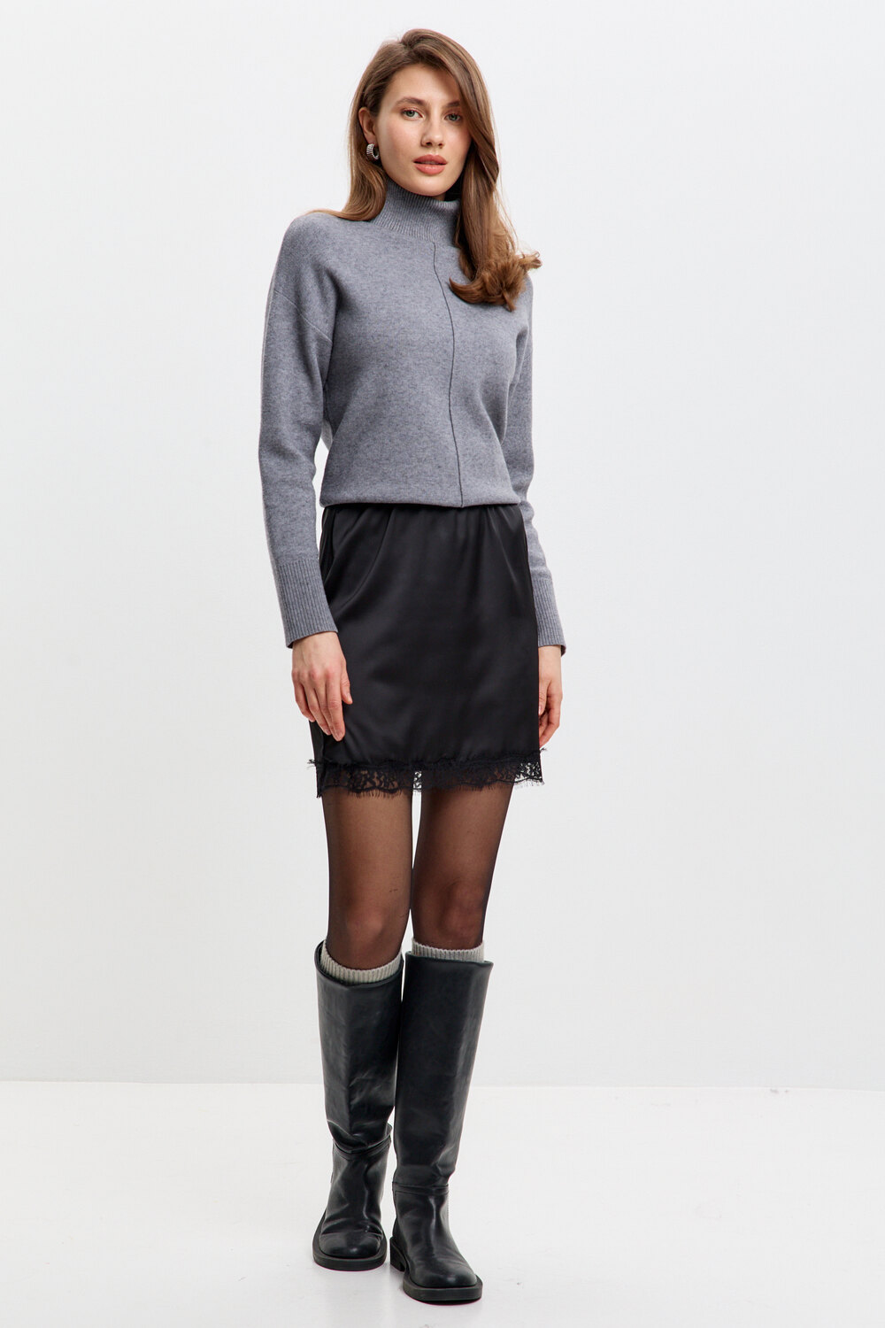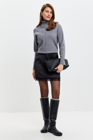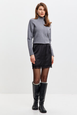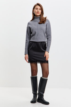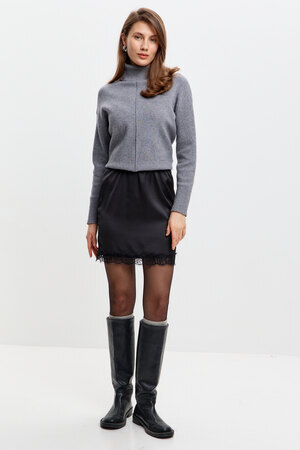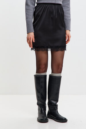 Стильная, атласная юбка с кружевом – идеальный выбор для создания элегантного и соблазнительного образа. Мягкий блеск ткани подчёркивает женственность, а отделка в виде кружева, делает модель особенно утончённой. Эта атласная мини – юбка дополнит любой образ и подчеркнёт природную женственность!