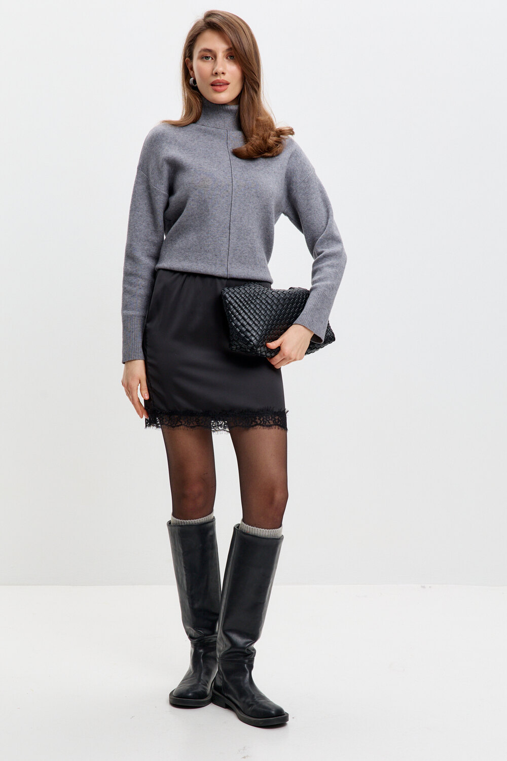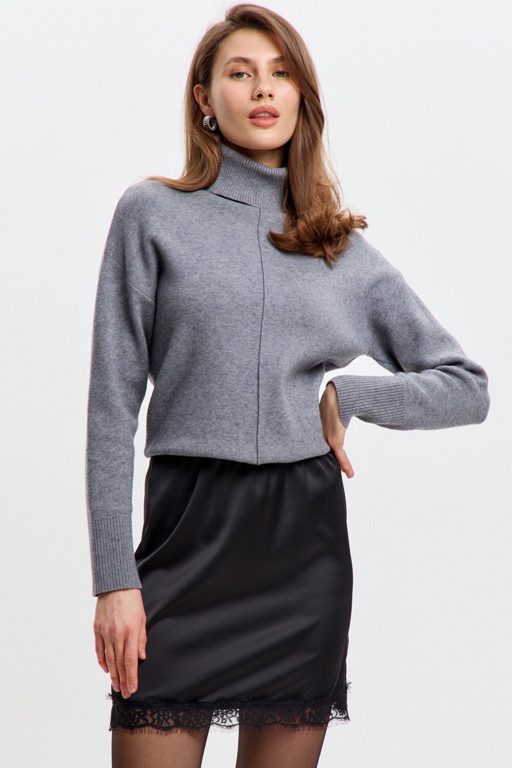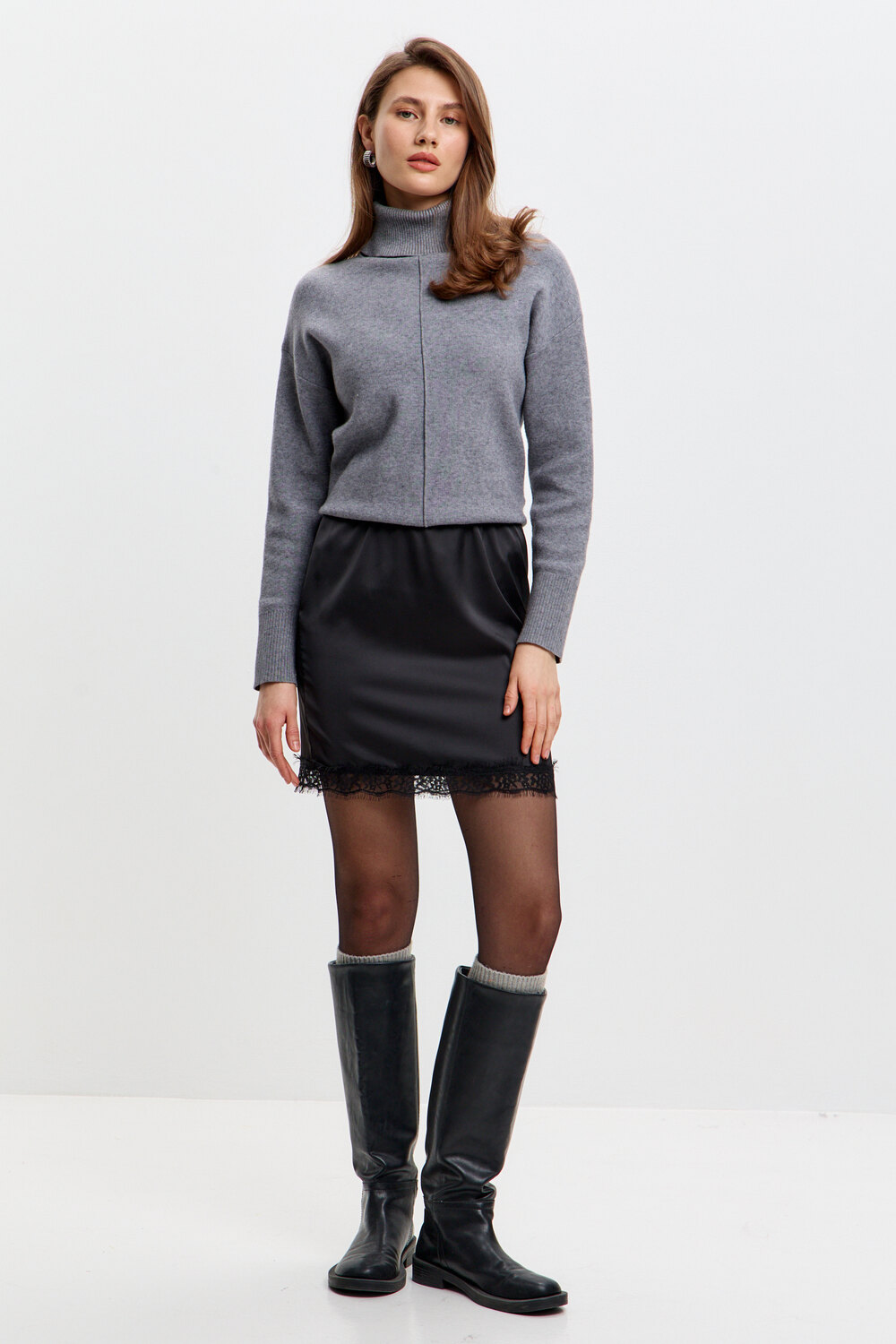 Стильная, атласная юбка с кружевом – идеальный выбор для создания элегантного и соблазнительного образа. Мягкий блеск ткани подчёркивает женственность, а отделка в виде кружева, делает модель особенно утончённой. Эта атласная мини – юбка дополнит любой образ и подчеркнёт природную женственность!