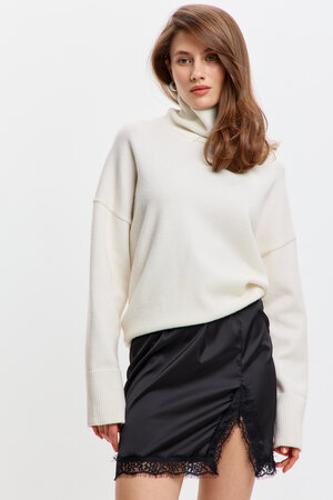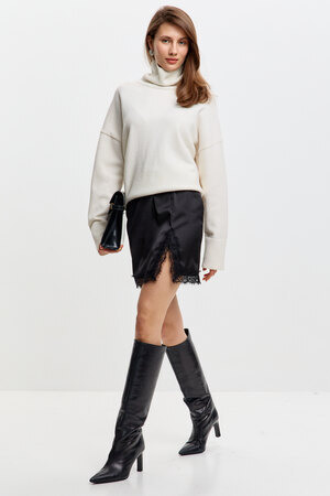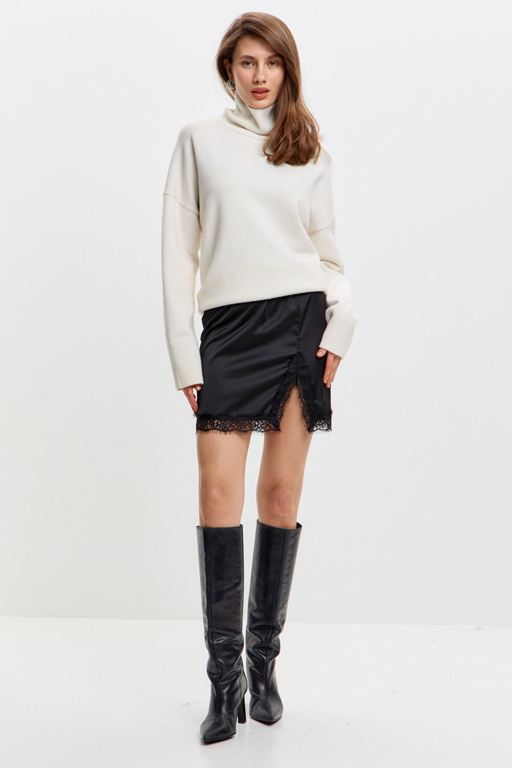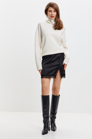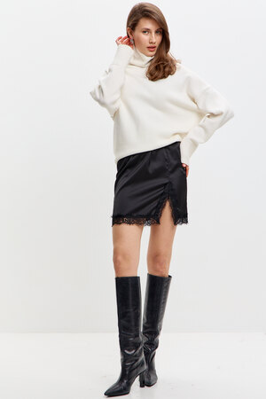 Стильная, атласная юбка с кружевом – идеальный выбор для создания элегантного и соблазнительного образа. Мягкий блеск ткани подчёркивает женственность ,а отделка в виде кружева, делает модель особенно утончённой. Эта атласная мини – юбка с разрезом, дополнит любой образ и подчеркнёт природную женственность!