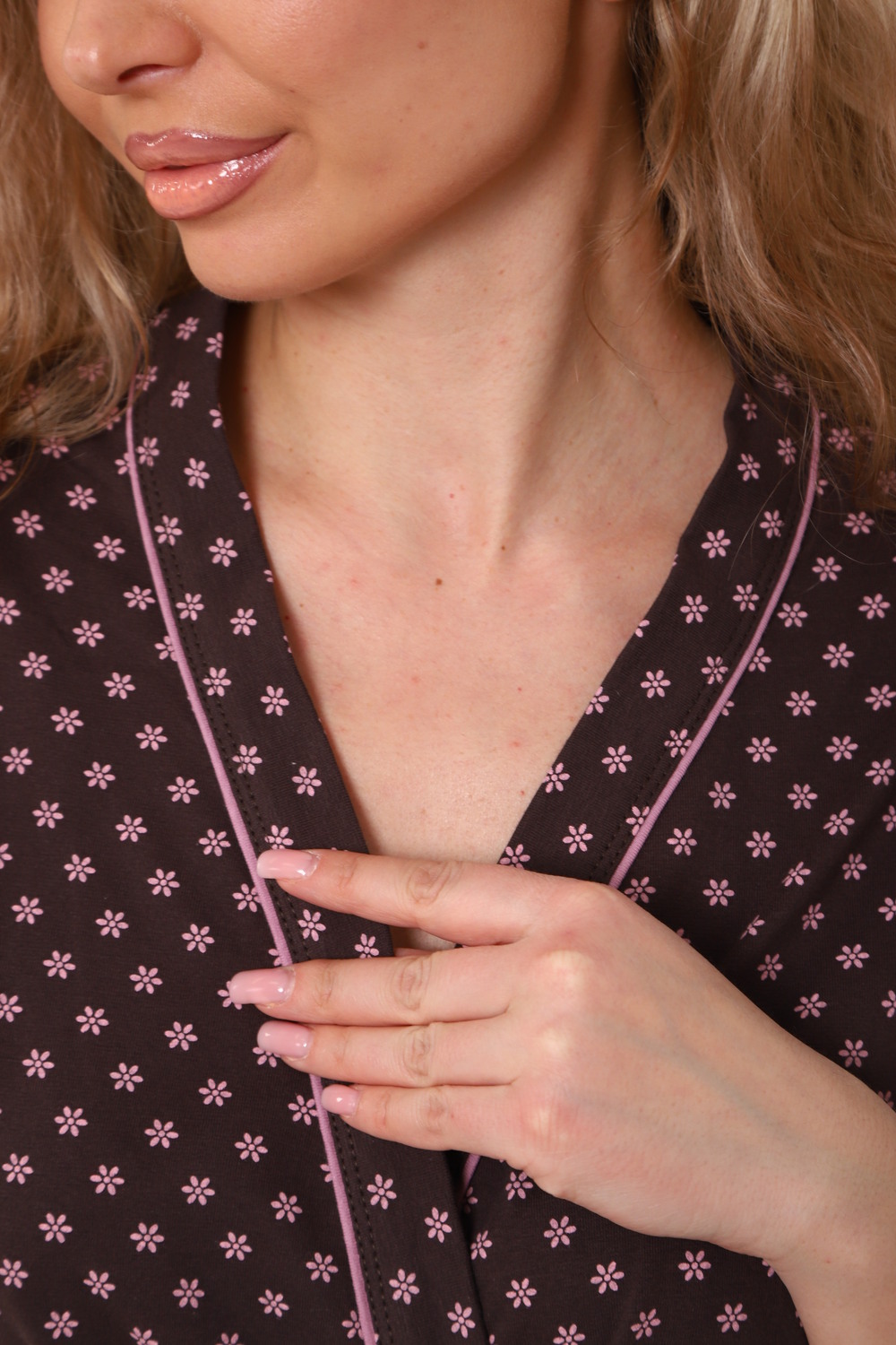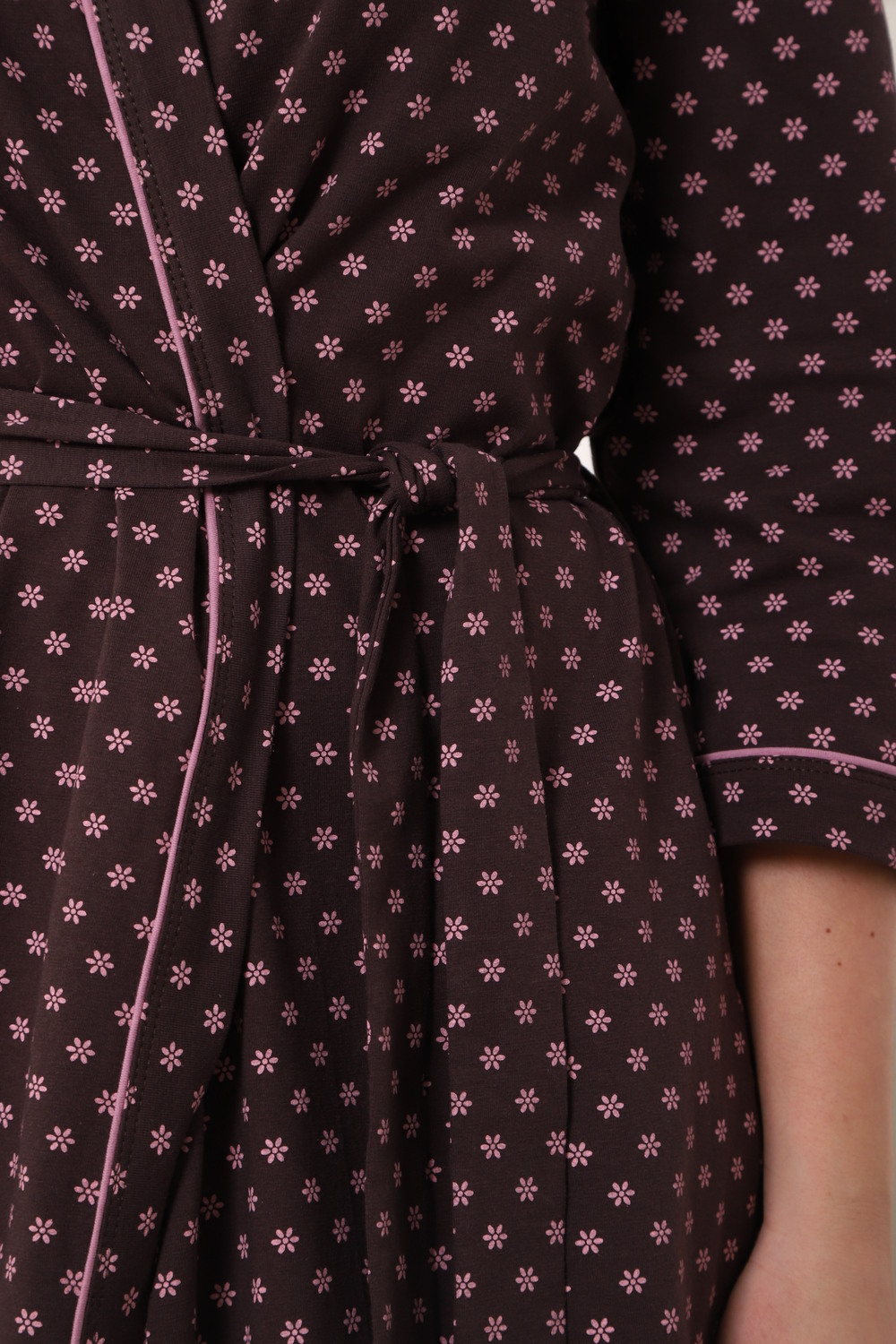 Халат женский на запах с поясом. Состав ткани хлопок 95% лайкра 5%, карманы боковые. Рукав 3/4.