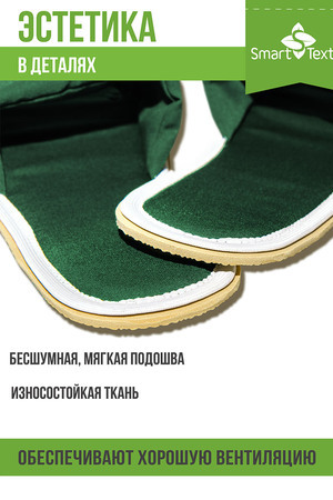 ✅ Противогрибковая и антимикробная обработка — надёжно защищают от бактерий и грибков, поддерживают гигиену ног. ✅ Открытый нос — обеспечивают дополнительную вентиляцию, предотвращают перегрев и потливость. ✅ Смесовая ткань верха — сочетает прочность и мягкость, приятна на ощупь, долговечна. ✅ Подошва из ЭВА (этиленвинилацетат) — лёгкая, гибкая, амортизирует нагрузку на стопу, не скользит на гладких поверхностях.