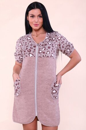 Крой: Практичная застежка на молнии позволяет быстро надевать и снимать халат. Удобный рукав 3/4 не мешает при домашних делах.