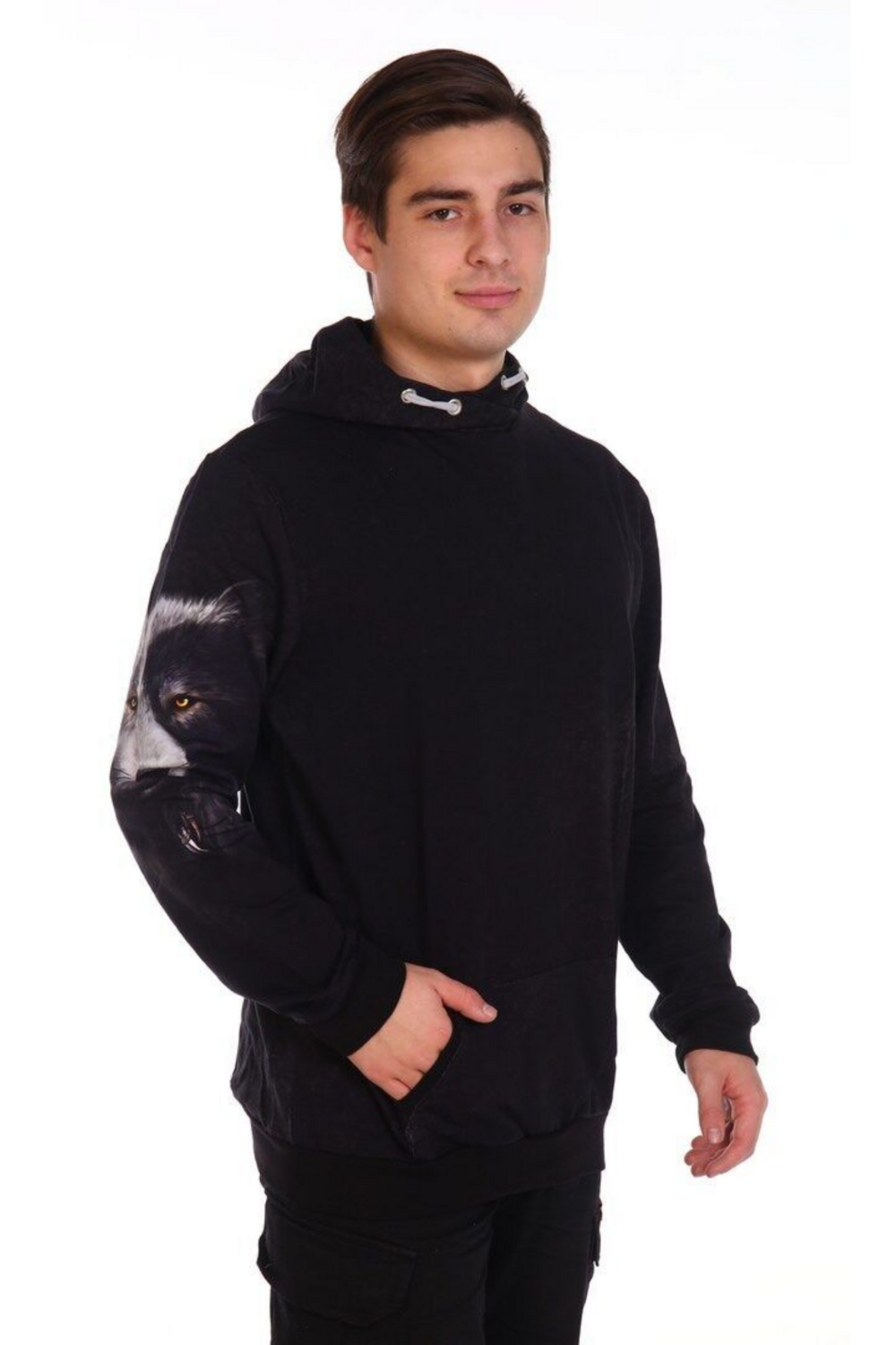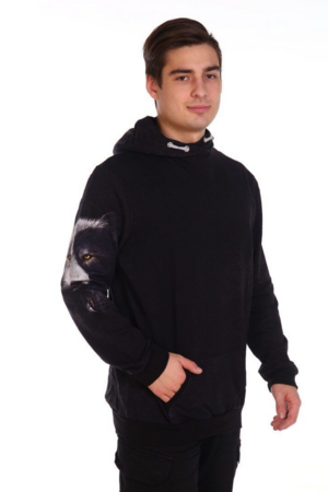 Принт «Волк»: Стильный принт с изображением волка расположен на плече, придавая изделию уникальность и характер.