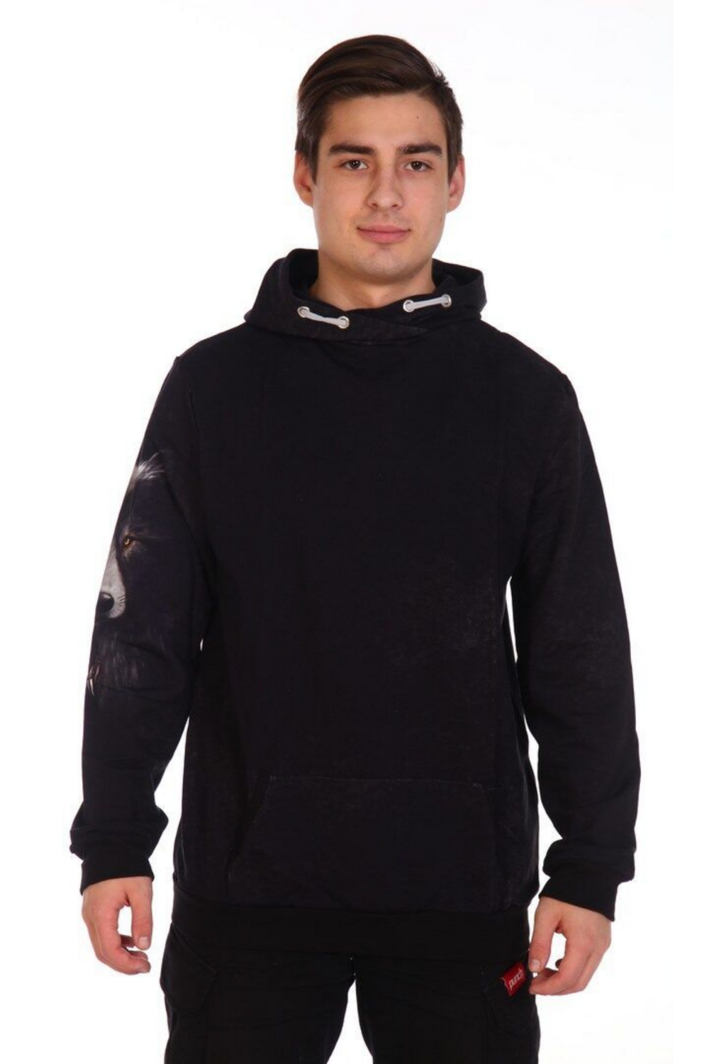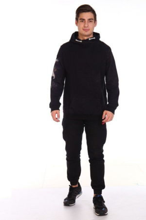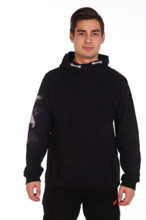 Представляем вашему вниманию мужскую толстовку (худи) черного цвета, выполненную из высококачественного трикотажного полотна футер 2-х нитка. Этот материал обеспечивает комфорт и долговечность, он мягкий и приятный к телу.