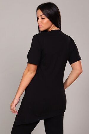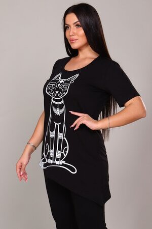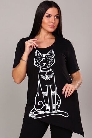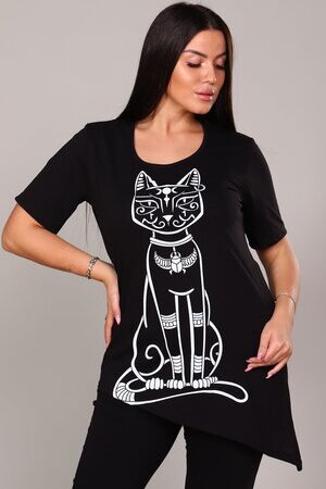 Элегантная и загадочная, эта туника идеально сочетает современный крой и элементы древней символики. Модель выполнена в классическом черном цвете, который стройнит фигуру и служит идеальным фоном для выразительного принта.