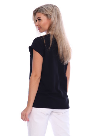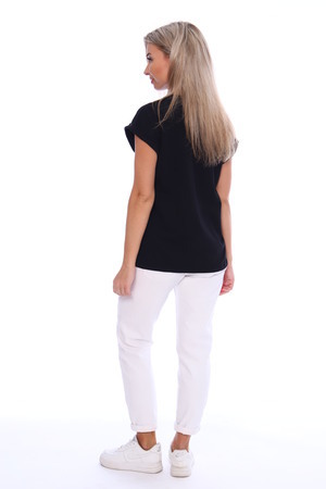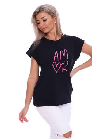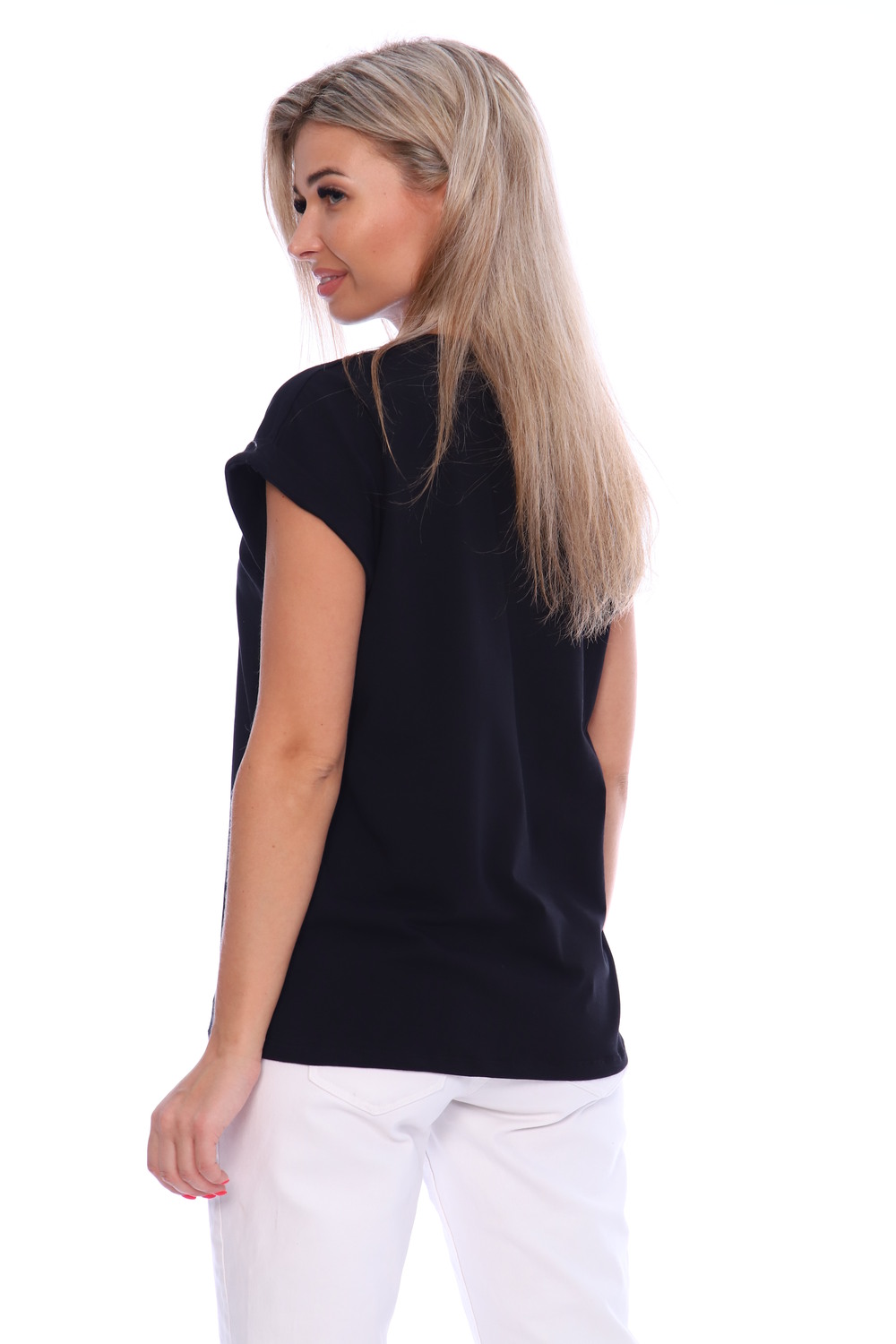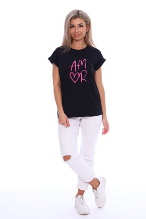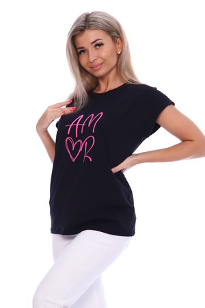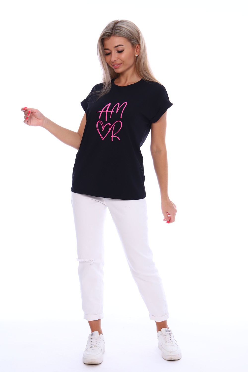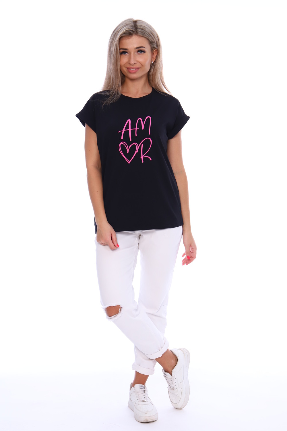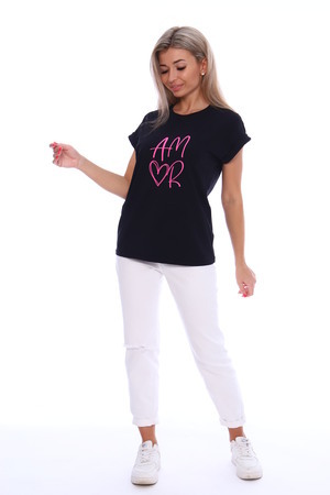 Футболка женская с оригинальным принтом, из хлопковой ткани с лайкрой. Ткань держит форму, не вытягивается, приятная на ощупь. Стильная футболка классического фасона со спущенным рукавом. Посадка свободная. Такая модель подойдет абсолютно всем и станет необходимой вещью в вашем гардеробе.