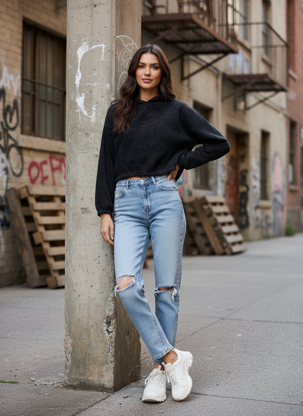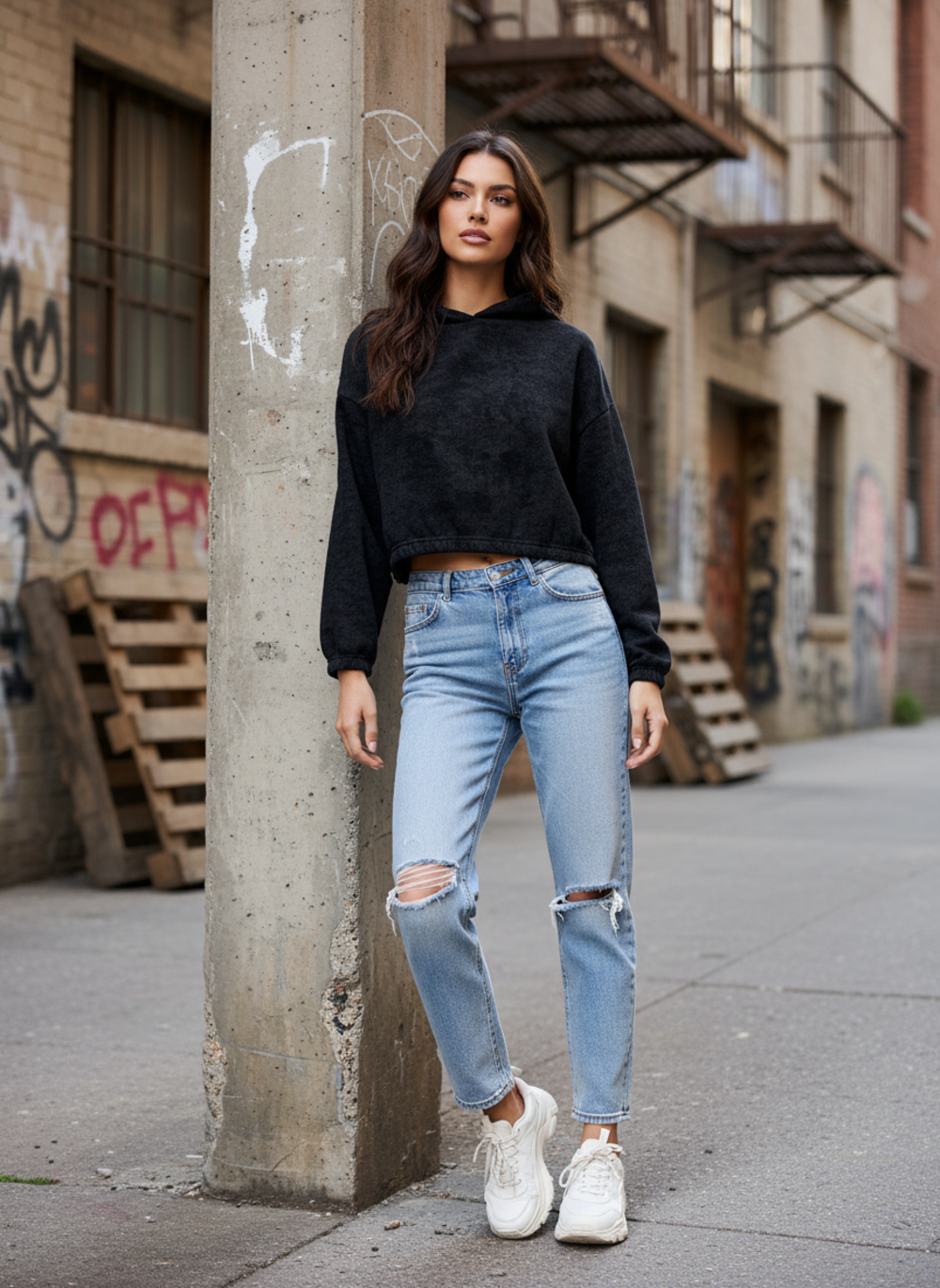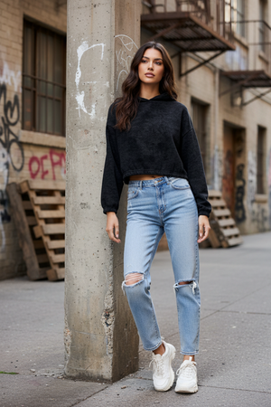 Худи женское укороченное варенка, силуэт оверсайз. Спущенное плечо.