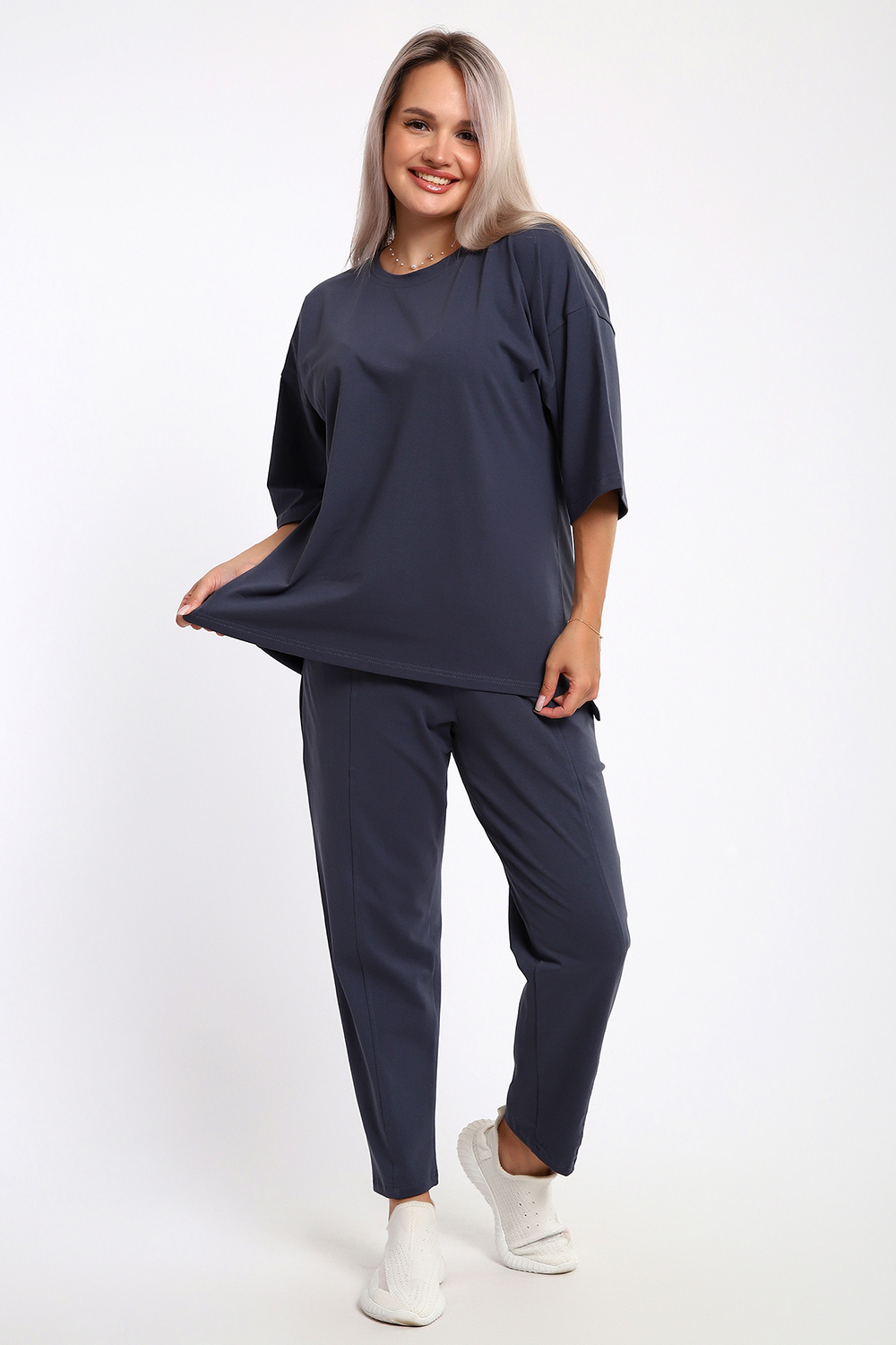 Силуэт: Свободный крой (оверсайз) обеспечивает максимальный комфорт и скрывает возможные нюансы фигуры.