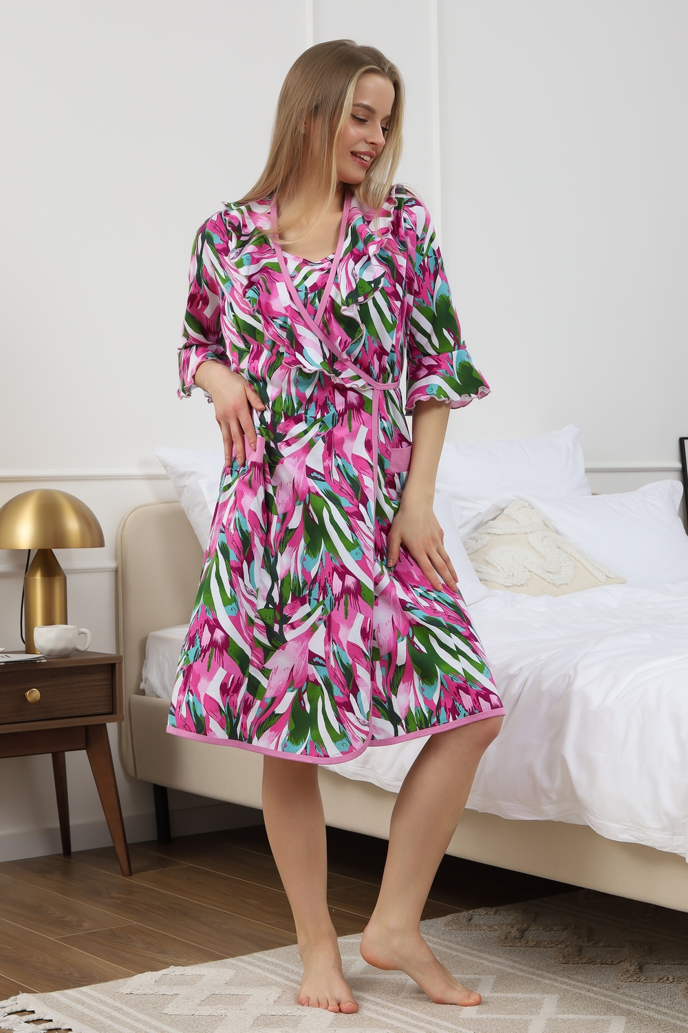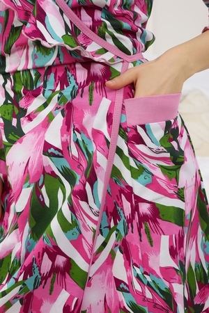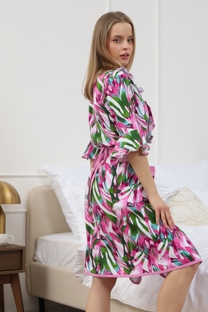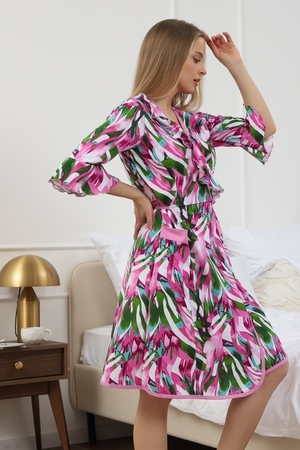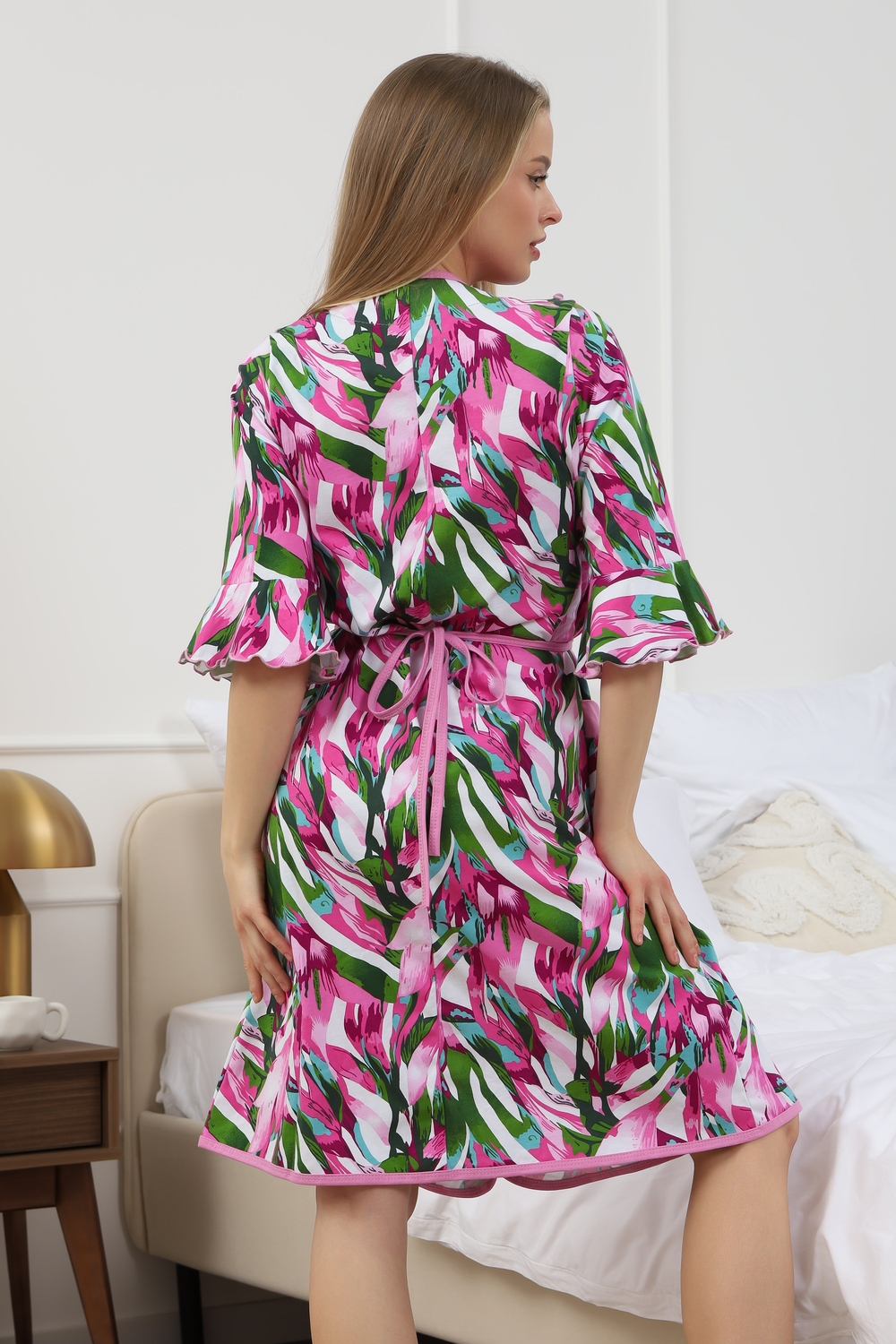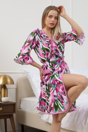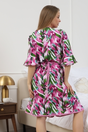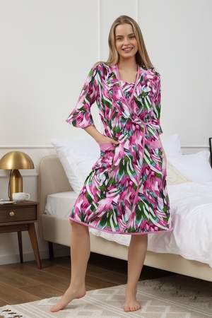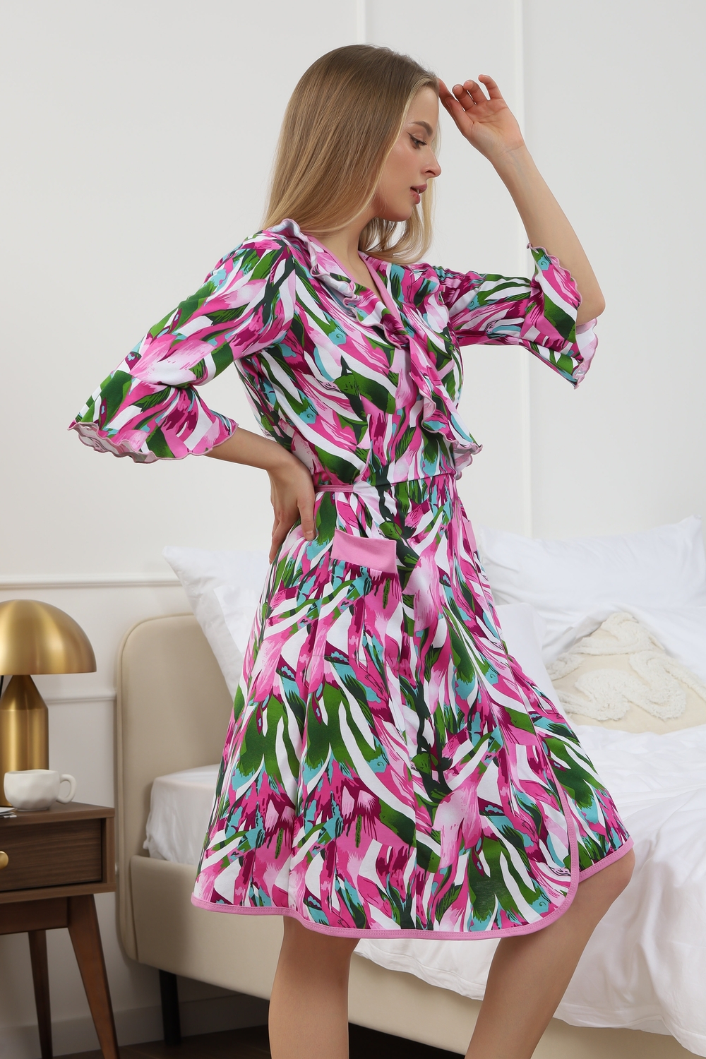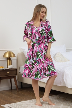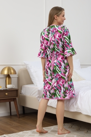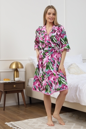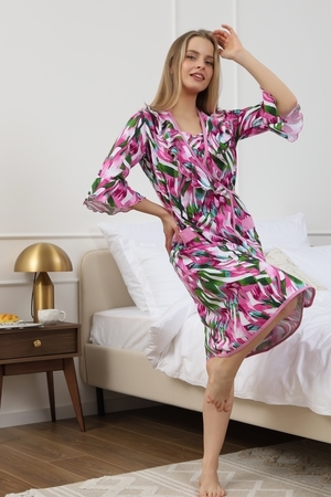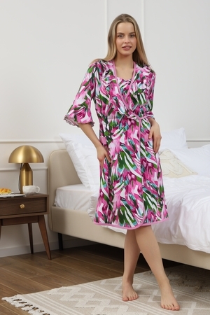 Мягкий хб халат с длинным рукавом 3/4 на запах создан специально для женщин и девушек, которые ценят комфорт и стиль в домашней одежде. Изготовленный из трикотажной кулирки, он идеально подходит на разные размеры, включая больших и полных, а также для беременных и роддома. Особенность модели — v-образный вырез с декоративной отделкой в виде рюш, которые добавляет женственности и легкости образу. Практичные прорезные карманы обеспечивают удобство использования, а запах на завязках позволяет легко подогнать изделие по фигуре. Молодежный принт с изображением цветов на ткани придает натуральности и современного настроения. Данная модель халата - отличный выбор для домашнего отдыха и повседневного использования. Этот домашний элемент одежды выполнен с учетом комфорта женщин всех возрастов и особенностей фигуры. Мягкий хлопковый материал бережно касается кожи, обеспечивая приятное ощущение в любое время года. Также изделие отличается продуманным кроем и аккуратной декоративной отделкой, которая подчеркивает индивидуальность и делает халат не только удобным, но и красивым. Удобство модели позволяет использовать ее в разных домашних ситуациях — от утренних сборов до вечернего отдыха. Этот домашний халат с красивым декором понравится многим, кто ищет стильное и функциональное решение на каждый день. Изделие сохраняет форму и мягкость, не сковывая движений. Длинный рукав 3/4 отлично защищает от прохлады, оставаясь при этом удобным и практичным одновременно. Подарок к 14 февраля и 8 марта, который точно пригодится — нежная домашняя одежда для тепла, уюта и хорошего настроения каждый день.