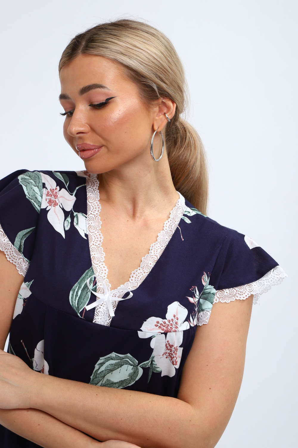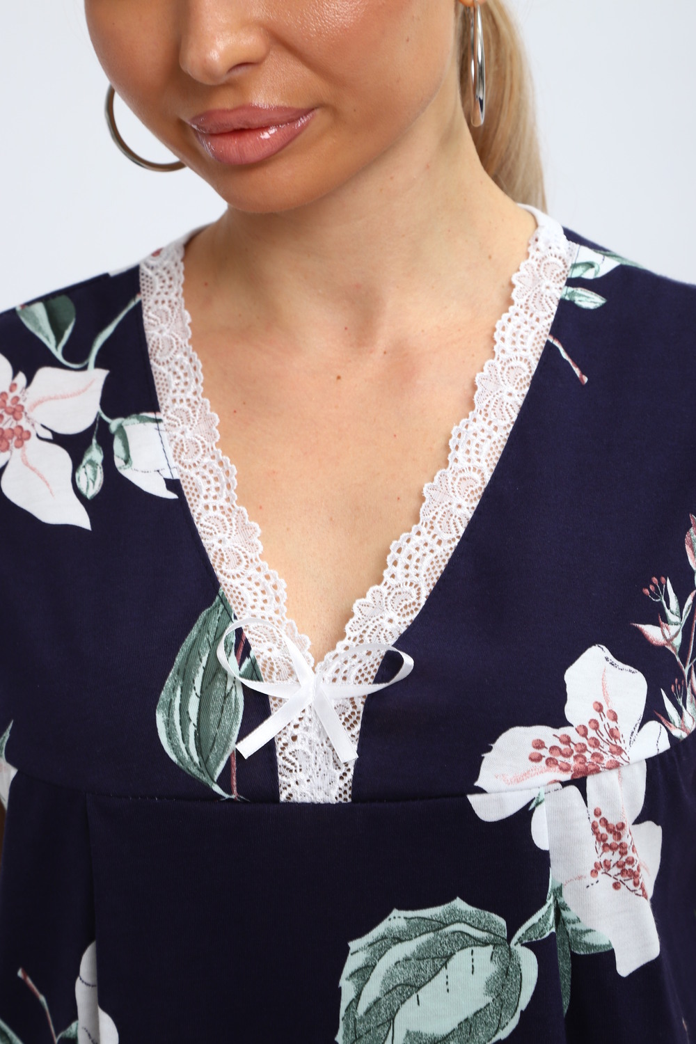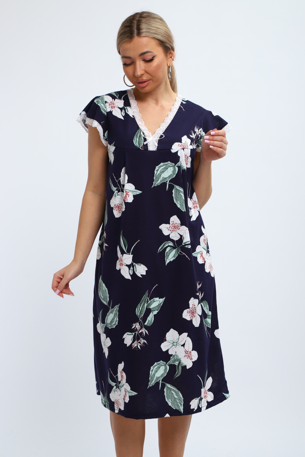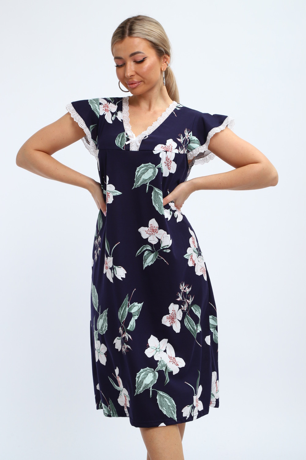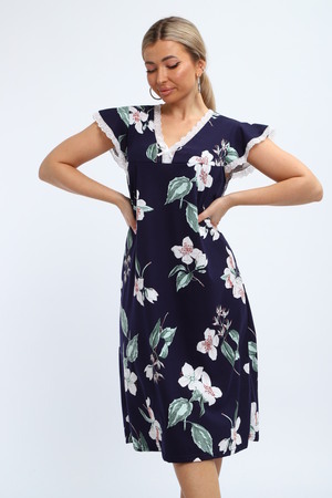 Ночная сорочка является идеальным решением для комфорта во время сна. Изготовлена из приятного на ощупь трикотажа, она мягкая и легкая. Стильная ночнушка с цветочным принтом добавляет в образ уют и атмосферу домашнего уюта. Это изделие удобно для женщин разных возрастов, а также подходит для больших размеров. Широкий покрой обеспечивает свободу движений. Такие рубашки отлично подходят как для девушек, так и для будущих мам. Они создают комфортные условия во время сна или отдыха дома зимой. Модель предназначена для беременных и кормящих женщин, что делает её незаменимой вещью в роддоме.