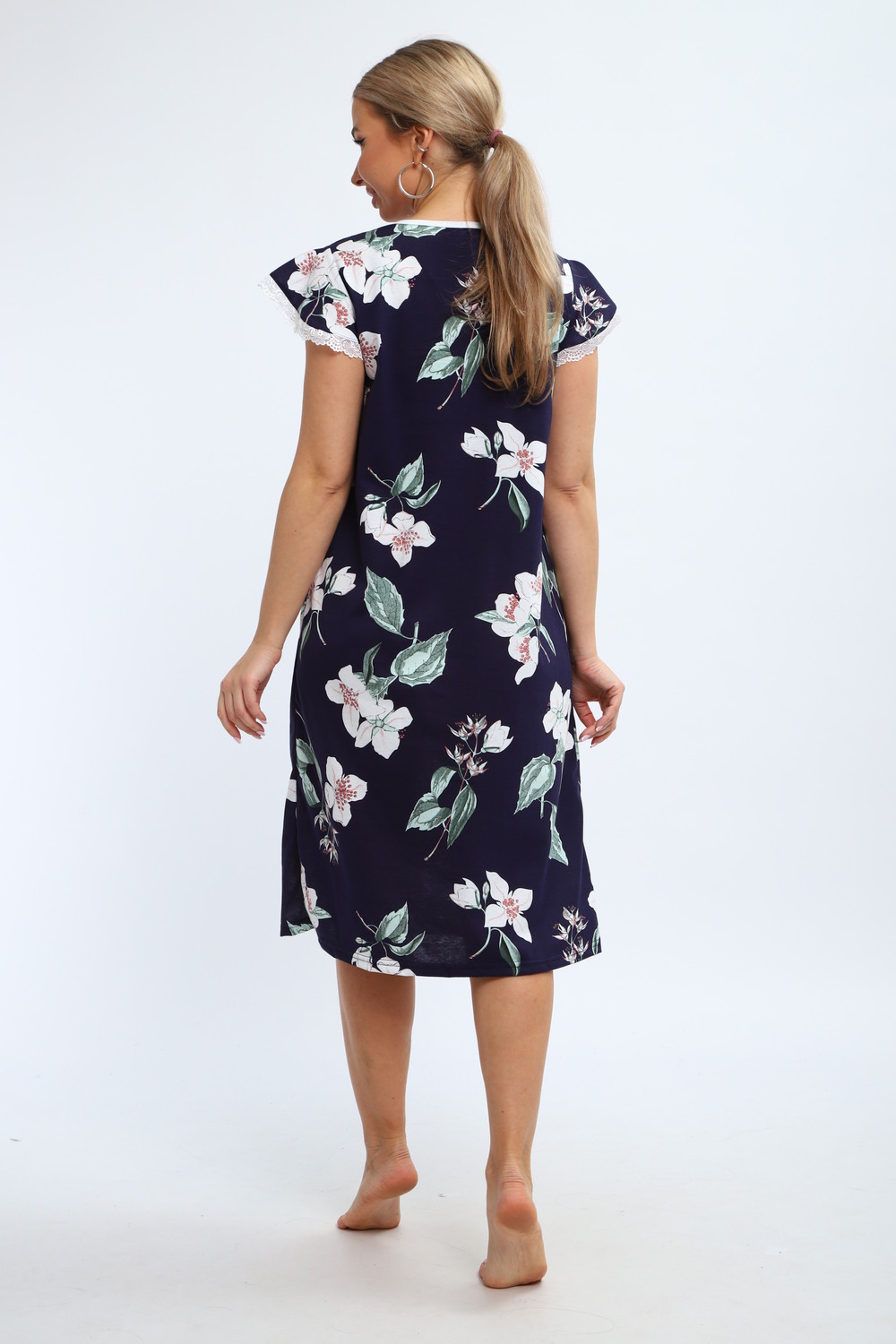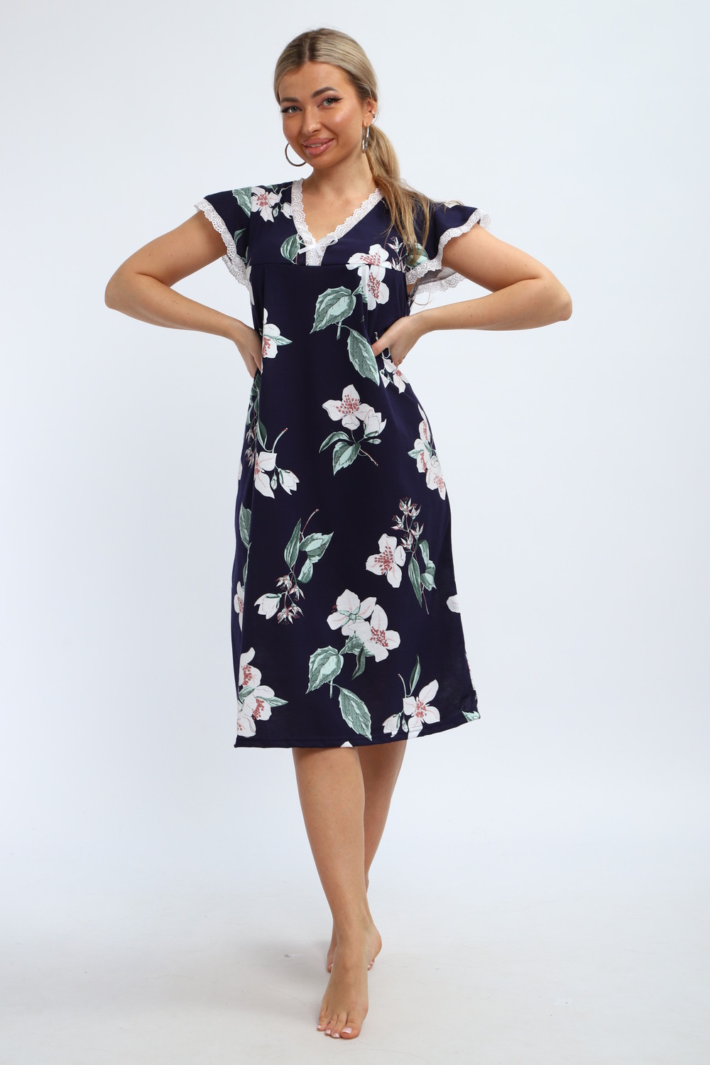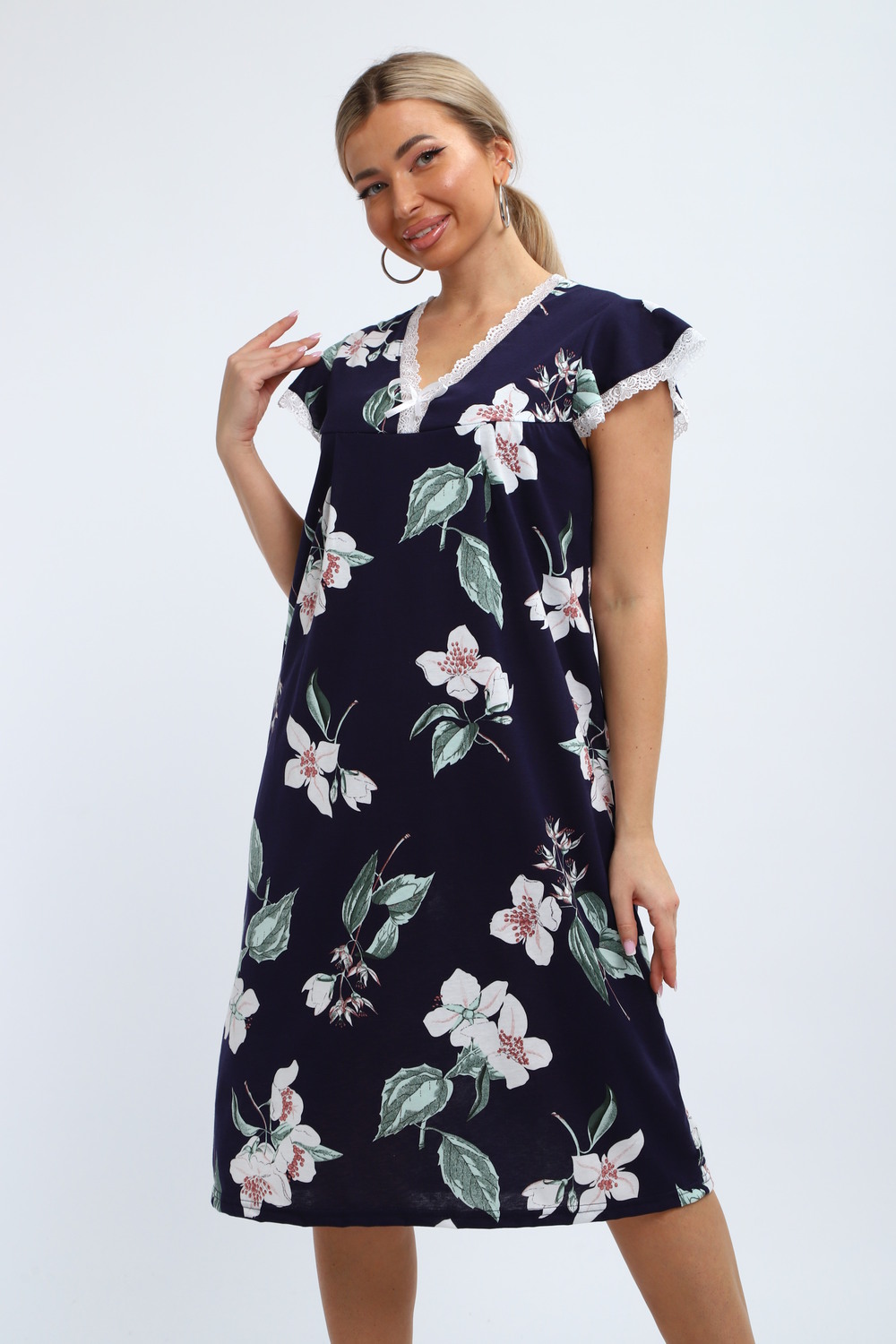 Ночнушка с короткими рукавами крылышками, что придаёт ей оригинальность и лёгкость. Она легко вписывается в повседневный гардероб, благодаря чему становится универсальной частью домашней одежды. Изделие выполнено из качественной 100% хлопковой ткани. Мягкость материала способна удовлетворить потребности даже самых требовательных покупателей. ХБ-структура изделия дышит, даря ощущение свежести в любое время суток. Эта ночнушка подходит как для полных дам, так и для бабушек или мам. Она станет отличным выбором для спокойного сна, особенно если вам важен комфорт перед сном или во время него. Удобство модели позволяет использовать её без ограничений. Несмотря на свободный крой, изделие выглядит аккуратно и стильно. Каждая деталь этой комфортной ночной сорочки продумана так, чтобы вы чувствовали себя прекрасно в любое время суток. Модель из кулирки подарит ощущение лёгкости и непринужденности. Подарок к 14 февраля и 8 марта, который точно пригодится — нежная домашняя одежда для тепла, уюта и хорошего настроения каждый день.