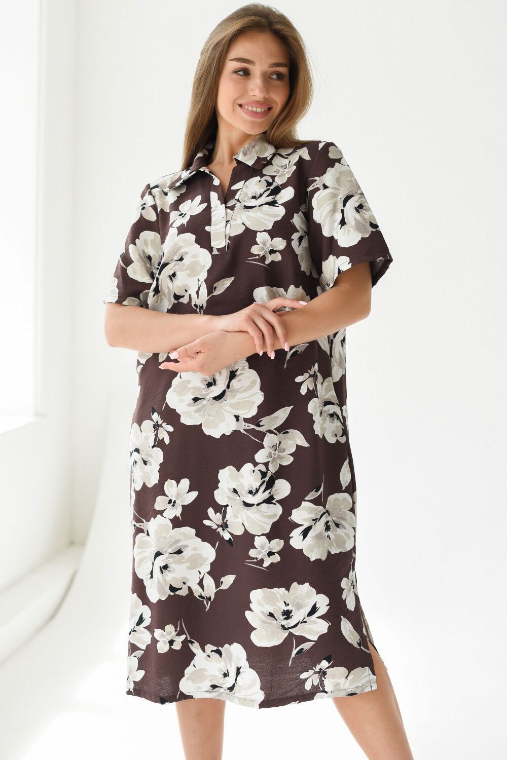 Легкое длинное стильное летнее женское платье в цветочек из полиэстера 100% от российского текстильного бренда Batistcorp Ivanovo (Батист) станет идеальным выбором для жаркого летнего дня. Прямое воздушное платье длиной до колена, боковыми вырезами на ногах и коротким половинным рукавом обеспечит комфорт и свободу движений. Платье с воротником, V-образный вырез горловины. За счет полуприлегающего покроя платье красиво смотрится на любом типе фигуры. В нём вы будете чувствовать себя комфортно и уверенно в любой ситуации. Размерный ряд этого платья представлен в широком спектре, что позволяет каждой женщине найти подходящий размер и насладиться стильным образом на лето. Это летнее платье сарафан от маленьких до больших размеров подходит как для полных женщин, так и для тех, кто ценит свободную и удобную одежду. Крой модели делает её универсальной для разных ситуаций: она подойдёт и для повседневного домашнего использования, и для выхода в свет. Модный принт с цветами придаст образу нежность и неповторимый шарм. Эта модель прекрасно подойдёт как высоким, так и невысоким девушкам. Покупая красивые вещи, вы создаете хорошее настроение и радуете себя и близких. Пусть ваш гардероб всегда будет наполнен стильными и удобны