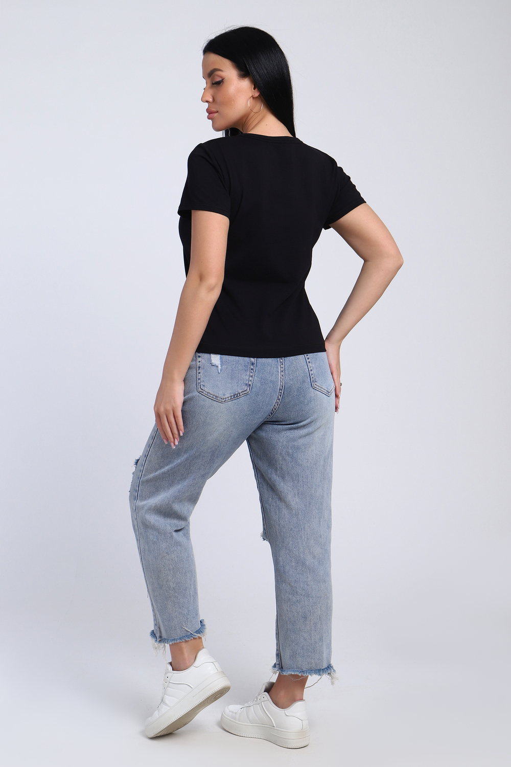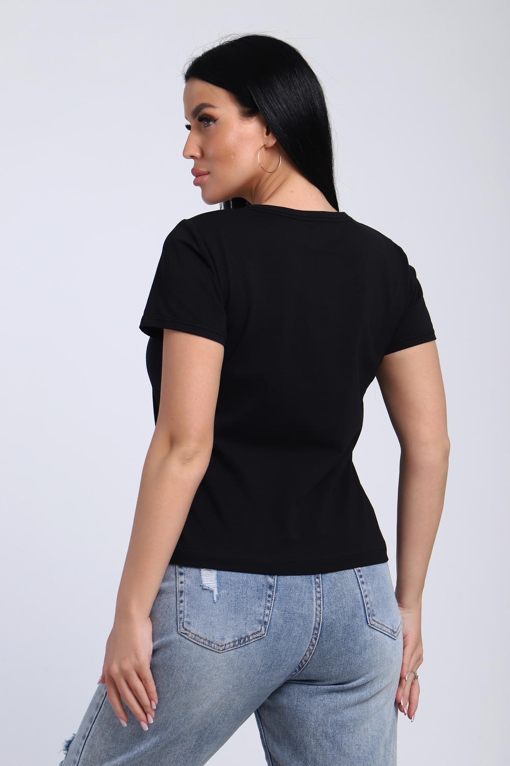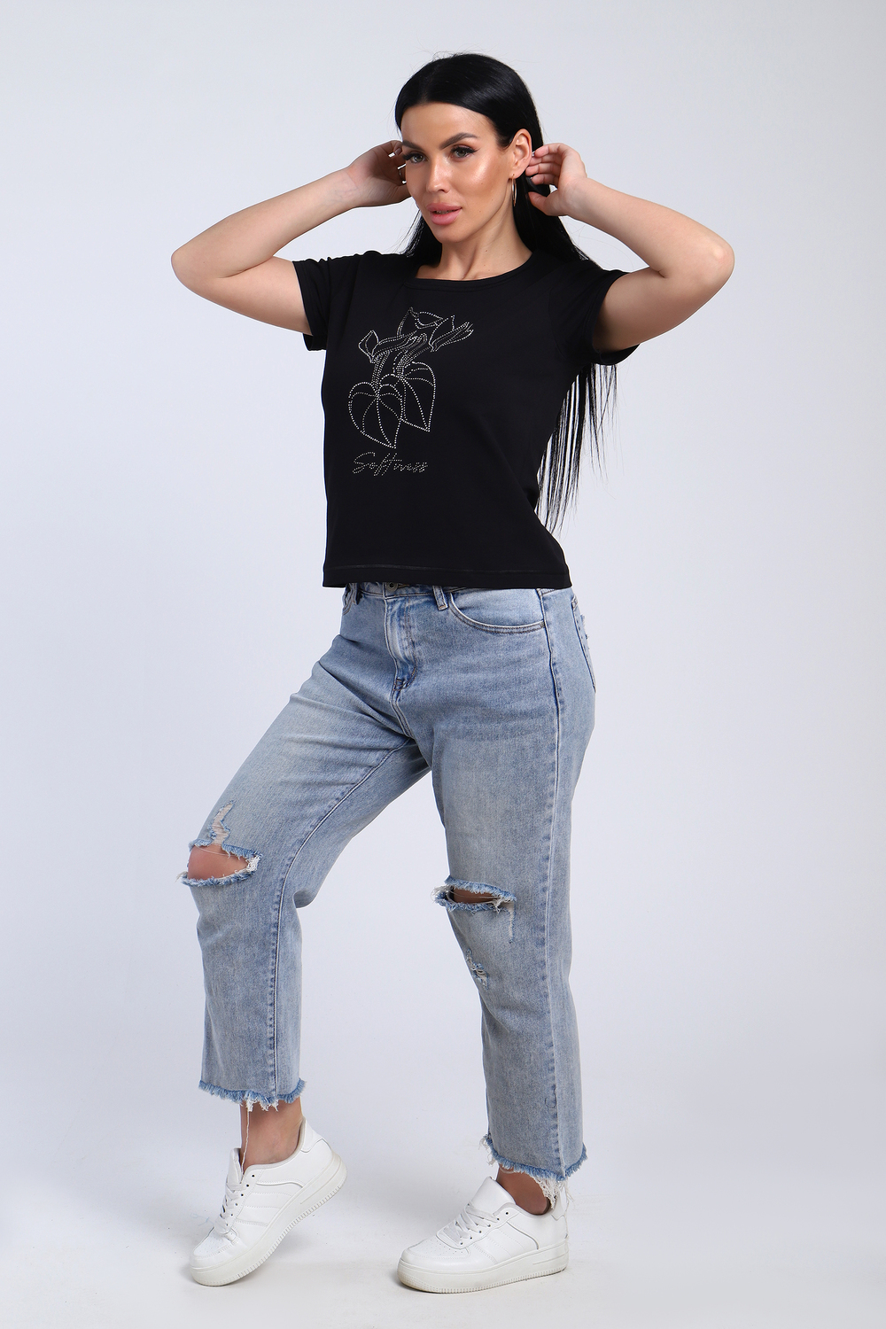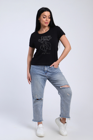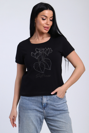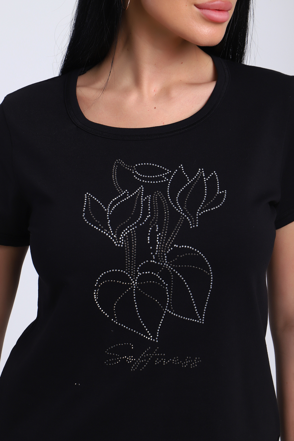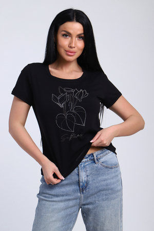Футболка женская со стразами, ткань мягкая и приятная к телу. Базовая футболка это отличный вариант для вашего гардероба, ее можно сочетать с любыми вещами.