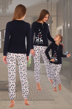 Костюм женский трикотажный. Кофточка с втачным длинным рукавом и манжетом по низу. На полочке присутствует планка с кнопками и яркий принт. Брюки прилегающего покроя с манжетом по низу. Костюм выполнен из очень приятной на ощупь трикотажной ткани. Подходит как для дома, так и для сна