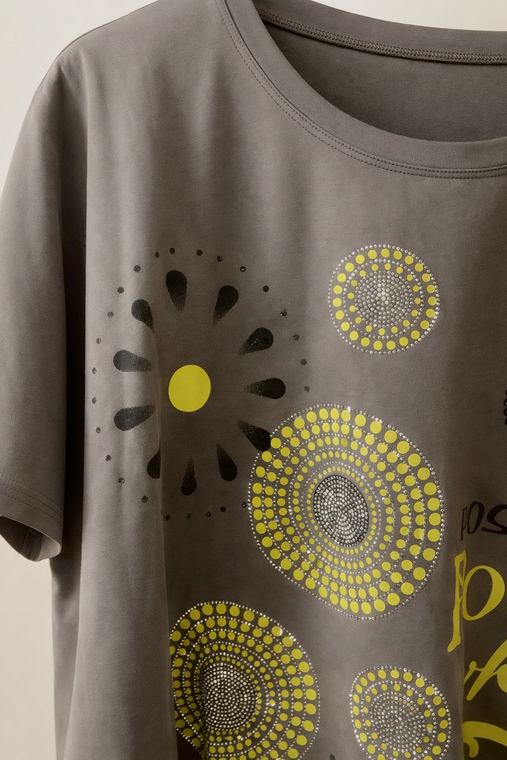 Сияющее впечатление — эффект «солнечного блеска»: по передней части расположены композиции из страз в виде абстрактных цветов и кругов. Стразы переливаются в свете — особенно красиво на солнце, создавая ощущение легкости, радости и внутреннего сияния. Это не просто декор — это энергия, которую вы несёте с собой.