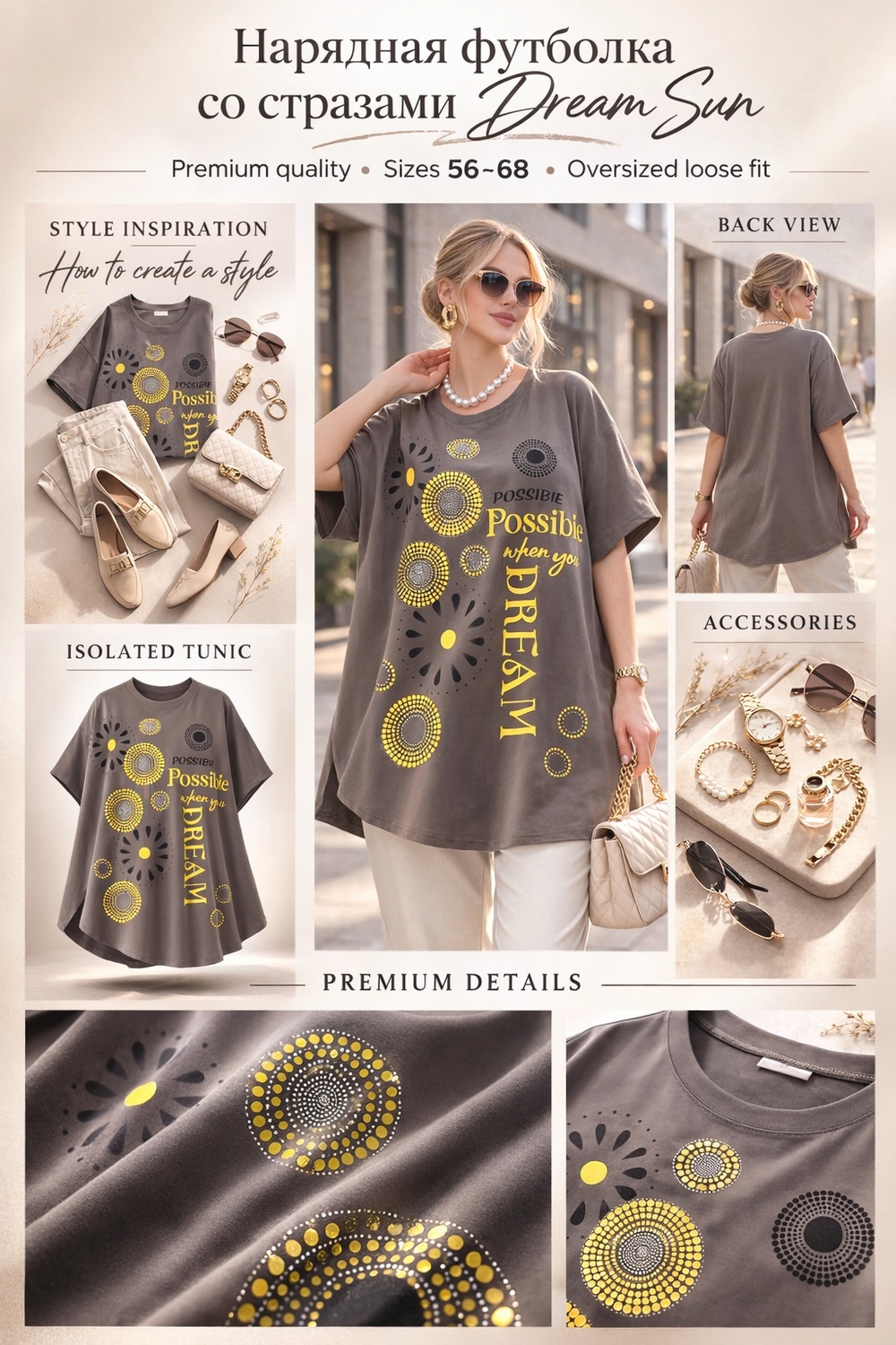 Нарядная футболка-туника «Dream Sun», арт. F9702 сияющий образ для тех, кто верит в мечты.