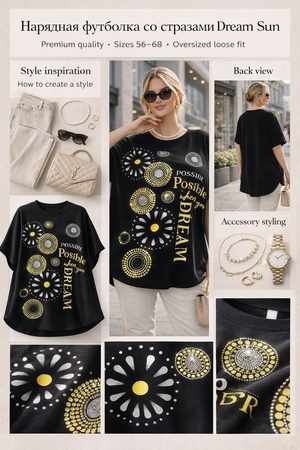 Нарядная футболка-туника «Dream Sun», арт. F9702 сияющий образ для тех, кто верит в мечты.