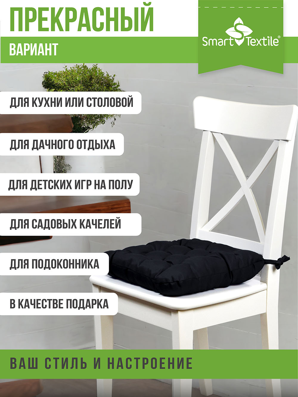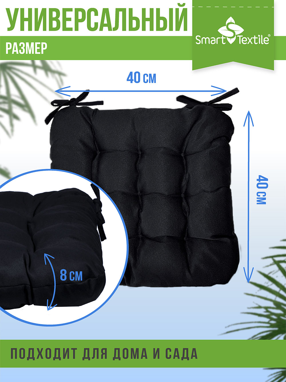 Размер: 40 × 40 см (идеально подходит для стандартных стульев, кресел и скамеек).