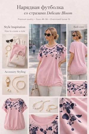 Размерная сетка 48-56 охватывает большинство фигур благодаря эластичному составу и свободному крою. Независимо от вашей фигуры, футболка легко адаптируется к особенностям силуэта. Это делает её отличным выбором для тех, кто ценит удобство и практичность без компромиссов с эстетикой.