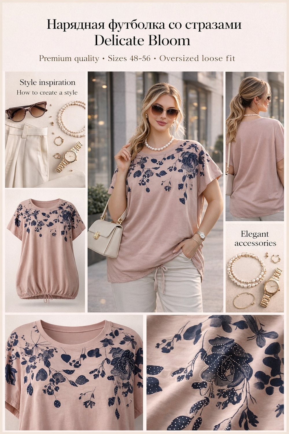 Эта футболка — настоящий акцент в образе. Её легко сочетать с джинсами, брюками или юбками, создавая как повседневные, так и вечерние луки. Стразы добавляют нотку роскоши, а мягкая ткань обеспечивает комфорт. Сочетайте её с белыми брюками для лаконичного образа или с джинсами для непринужденного стиля — в любом случае вы будете выглядеть безупречно!