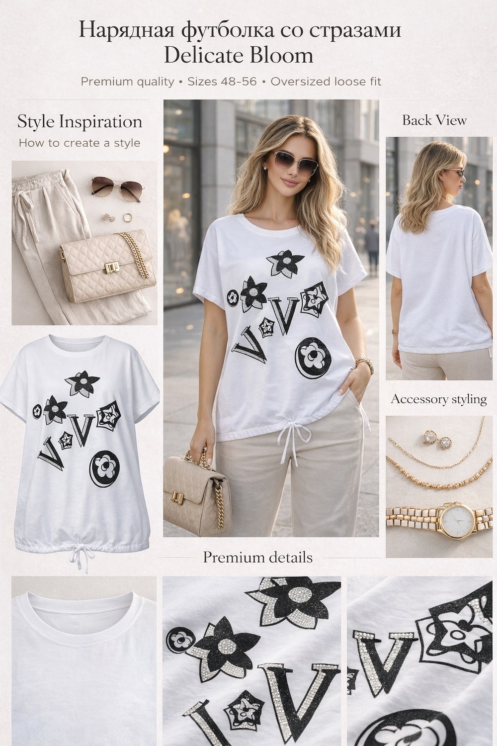 Дополните образ сумкой-клатч, стильной цепочкой или жемчужными аксессуарами — и вы готовы покорять улицы! Эта туника-футболка станет вашим любимым элементом гардероба, который вы будете носить снова и снова.