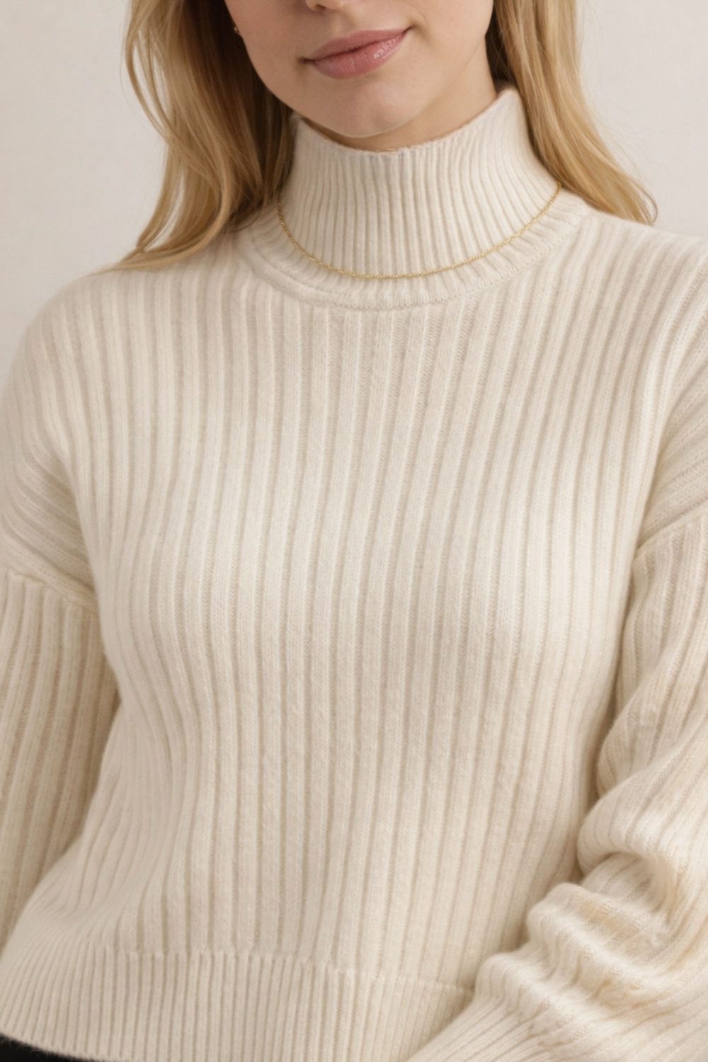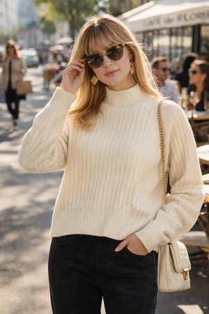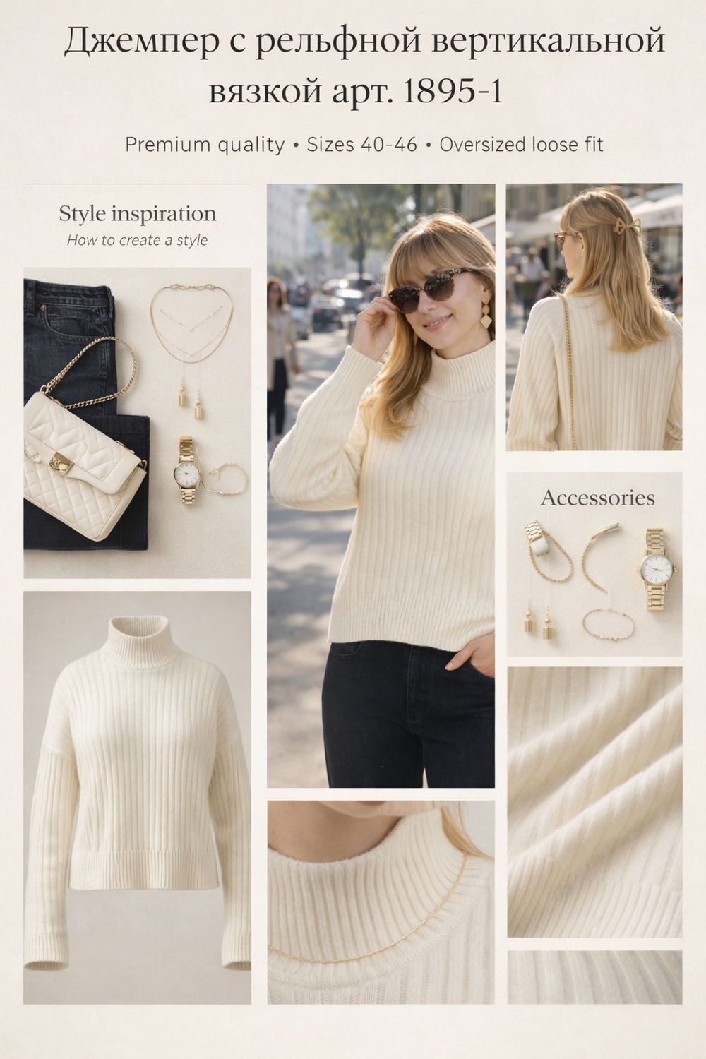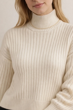 Модная деталь: Высокая стойка (turtleneck) обеспечивает тепло и позволяет создавать многослойные образы — носите поверх рубашки, блузки или легкого топа.