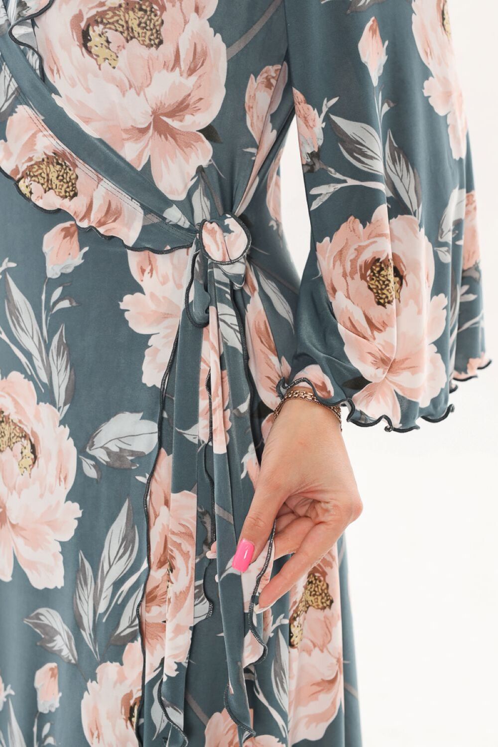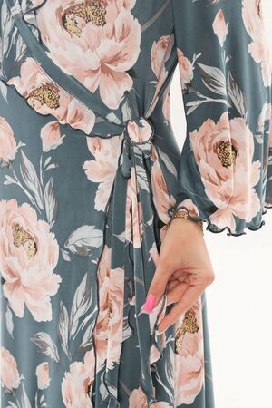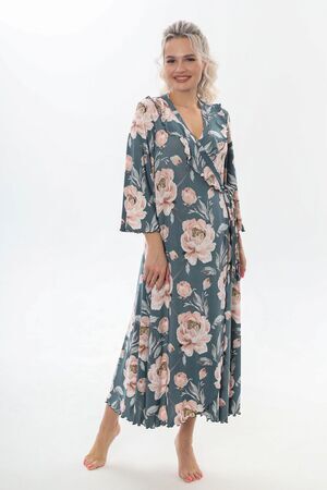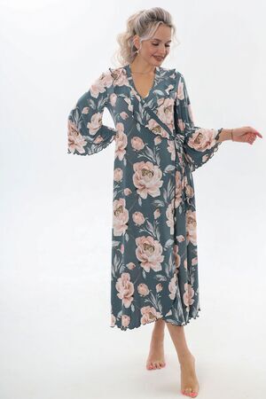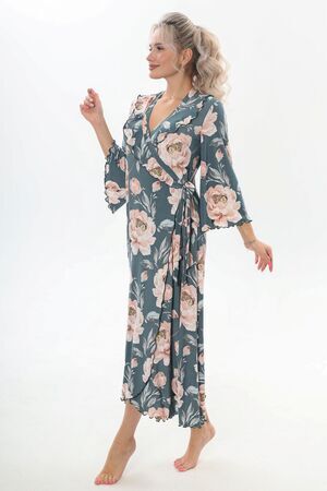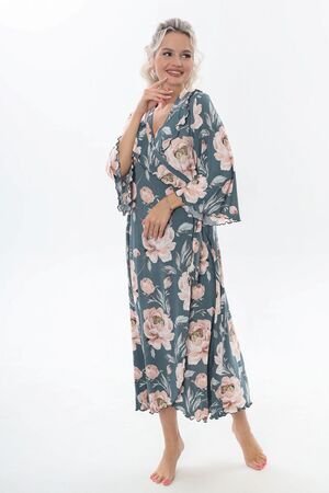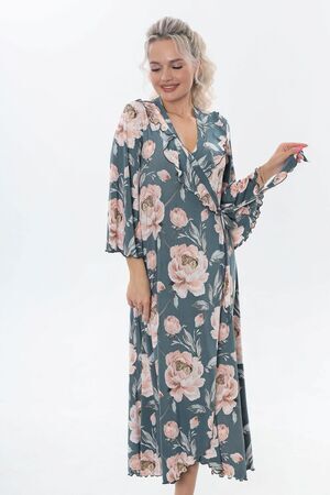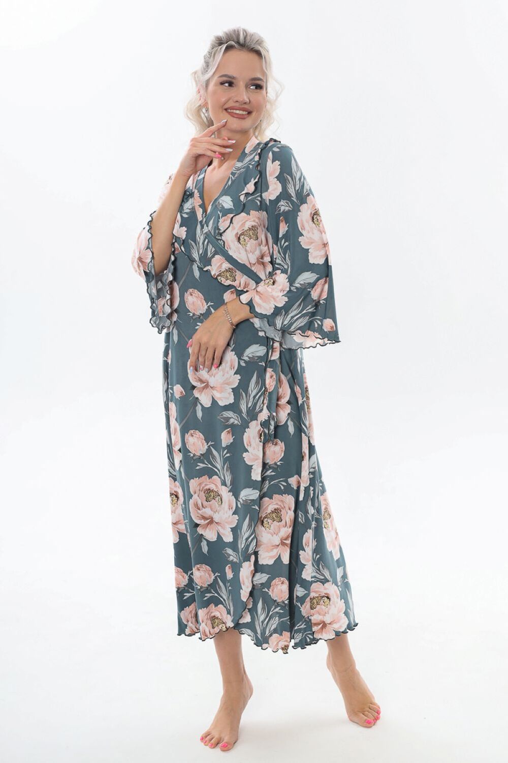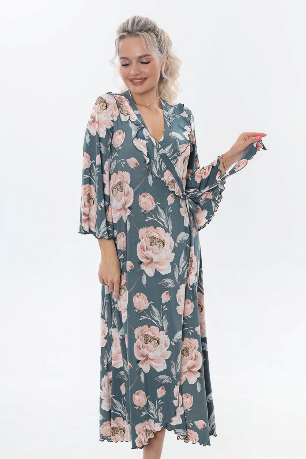 Халат домашний трикотажный женский - это отличное дополнение к вашей коллекции одежды для дома, созданной для тех, кто любит быть яркой и стильной, даже находясь в уютном уголке своего дома. Длинный халат с запахом имеет полуприлегающий силуэт, расклешенный к низу, длиной до середины икры. Линия талии завышена, что создает элегантный и изящный силуэт. На полочках, в области груди, расположены изящные воланы, которые добавляют изюминку к образу, подчеркивая женственность. Рукав в тачной, длиной 3/4, смотрится легко и элегантно, это делает его удобным в использовании. Подойдет как стройным женщинам, так и дамам с пышными формами. Возьмите халатик в роддом и будете самой элегантной мамочкой. Наш халат – это идеальный выбор для приятного времяпрепровождения в уютной обстановке. Сочетая в себе красоту и удобство, он идеально подходит для женщин, которые ценят качество во всем.