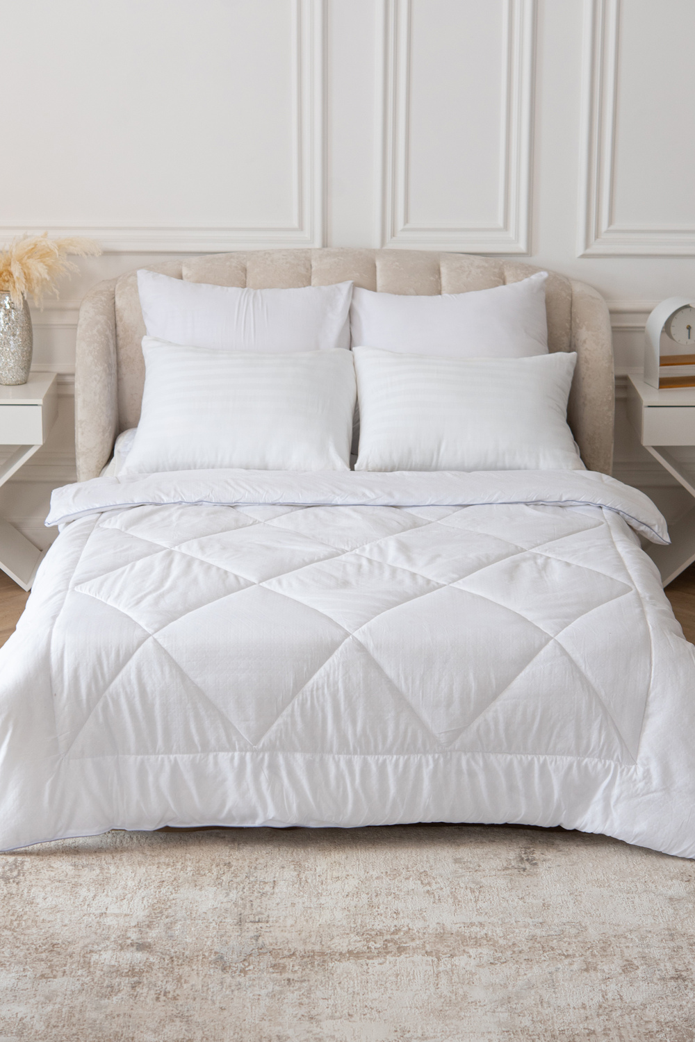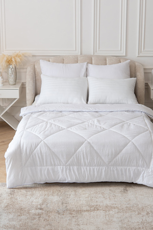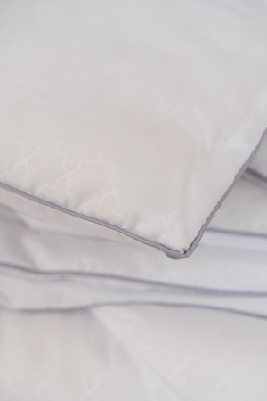 Лебяжий пух – это искусственный материал на основе синтетического микроволокна. Основным его достоинством является то, что он практически идентично воспроизводит свойства натурального пуха, а по некоторым параметрам и превосходит его: одеяло из лебяжьего пуха прекрасно держит форму, не скатывается в комки и достаточно легкое по весу. Поскольку материал синтетичен, то перспектива появления клещей и плесени вашей подушке не грозит. Одеяло из «лебяжьего пуха» абсолютно безопасно для людей, страдающих аллергией.