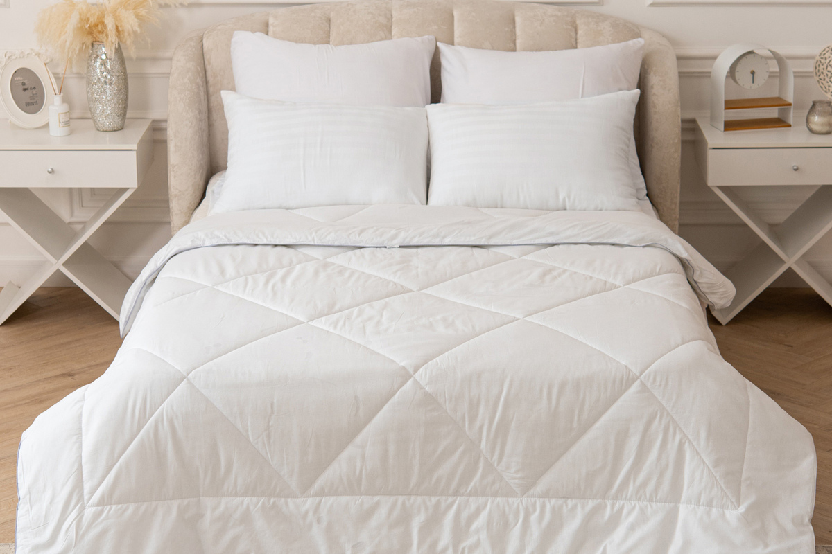 Лебяжий пух – это искусственный материал на основе синтетического микроволокна. Основным его достоинством является то, что он практически идентично воспроизводит свойства натурального пуха, а по некоторым параметрам и превосходит его: одеяло из лебяжьего пуха прекрасно держит форму, не скатывается в комки и достаточно легкое по весу. Поскольку материал синтетичен, то перспектива появления клещей и плесени вашей подушке не грозит. Одеяло из «лебяжьего пуха» абсолютно безопасно для людей, страдающих аллергией.