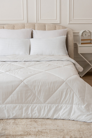 безупречно гладкая и тонкая ткань, в то же время отличающаяся повышенной плотностью. За счет этого она идеально сохраняет форму, поэтому ваша постель утром будет выглядеть такой же свежо и аккуратно, как и перед сном.