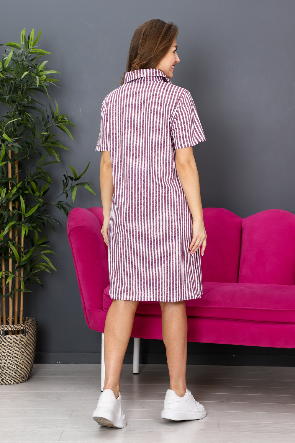 Женское летнее платье – это то, что нужно каждой модной девушке! Оно свободное и стильное, идеально подходит для повседневной жизни и прогулок. Это платье изготовлено из мягкого хлопка, что делает его не только красивым, но и удобным. Носите его с туфлями на каблуке и броскими украшениями для создания элегантного образа. Или наденьте кеды или солнцезащитные очки, чтобы создать легкий и стильный образ для прогулок. Оно точно станет вашим любимым выбором для любой ситуации. Кроме того, платье в полоску является классикой моды, которая никогда не выходит из тренда. Свободный крой платья обеспечивает максимальный комфорт и свободу движения, что делает его идеальным выбором для женщин, которые ценят удобство и практичность.